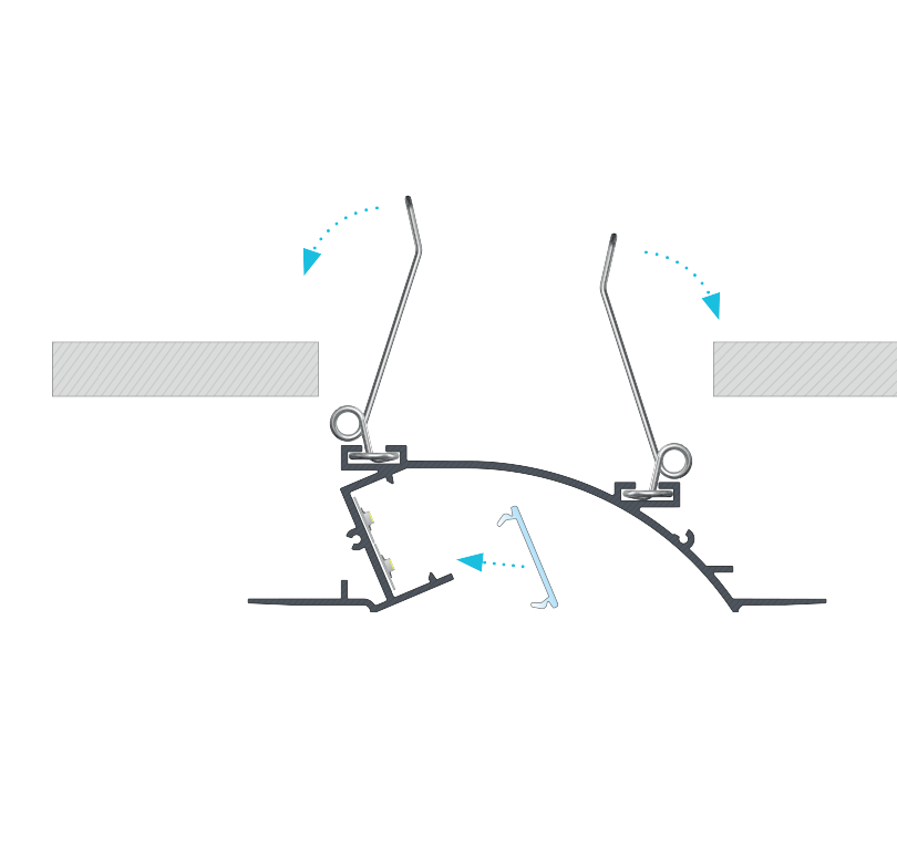 Instrukcja montażu profilu PERO z kloszem DOUBLE z wykorzystaniem sprężyn montażowych w systemie sufitów podwieszanych.
