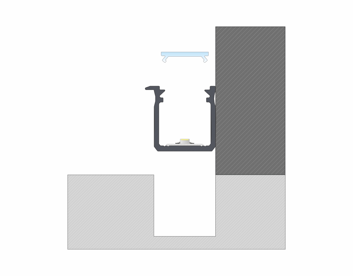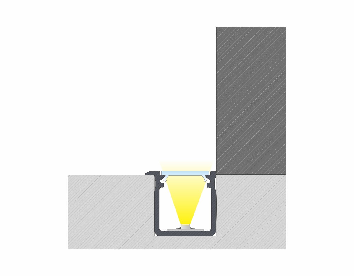 Efekt końcowy montażu profilu J wpuszczanego z kloszem BASIC.