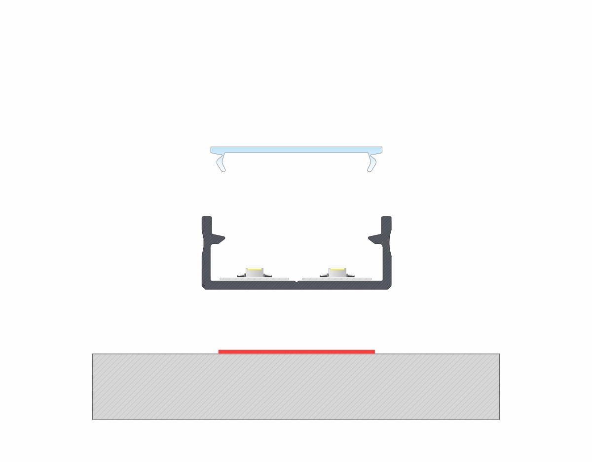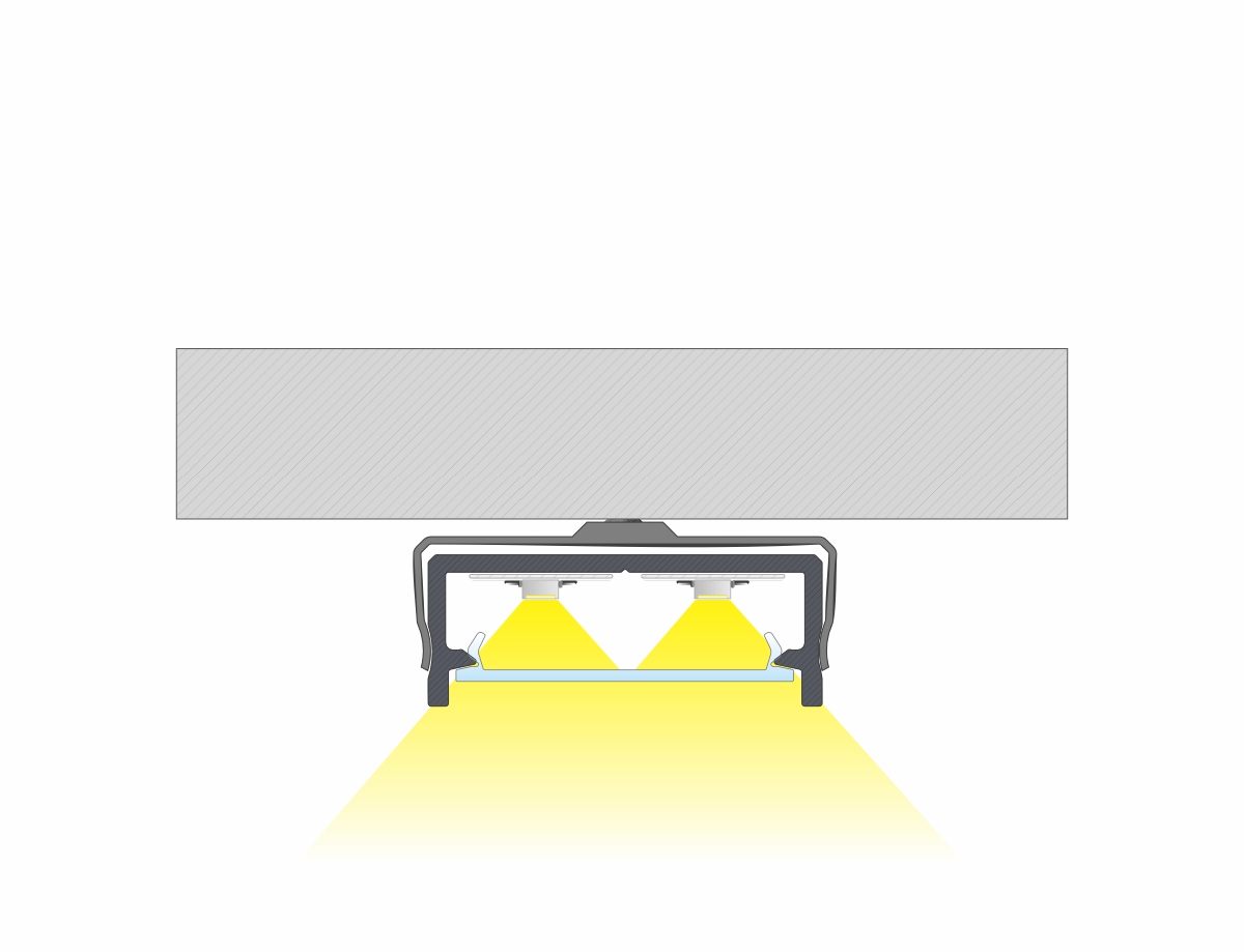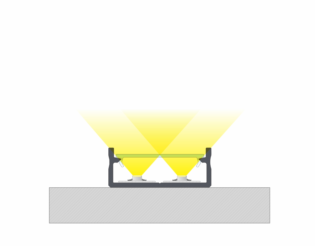 Efekt końcowy montażu profilu DUAL z kloszem DOUBLE z taśmą dwustronną.