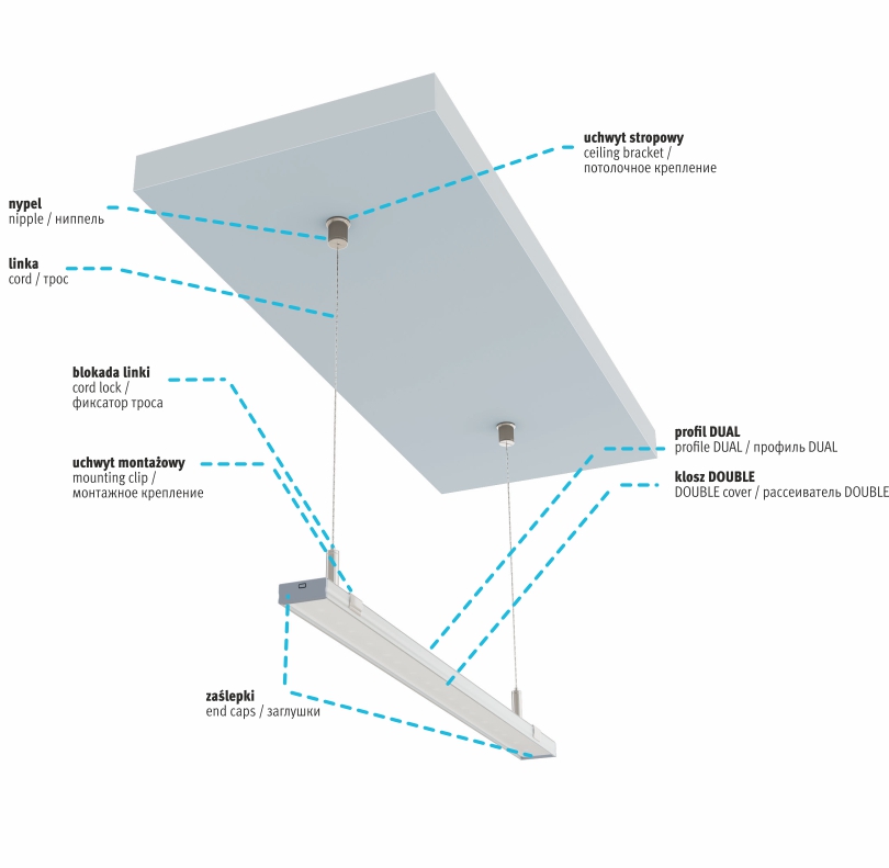 Instrukcja montażu profilu DUAL z kloszem DOUBLE z uchwytem montażowym DUAL.