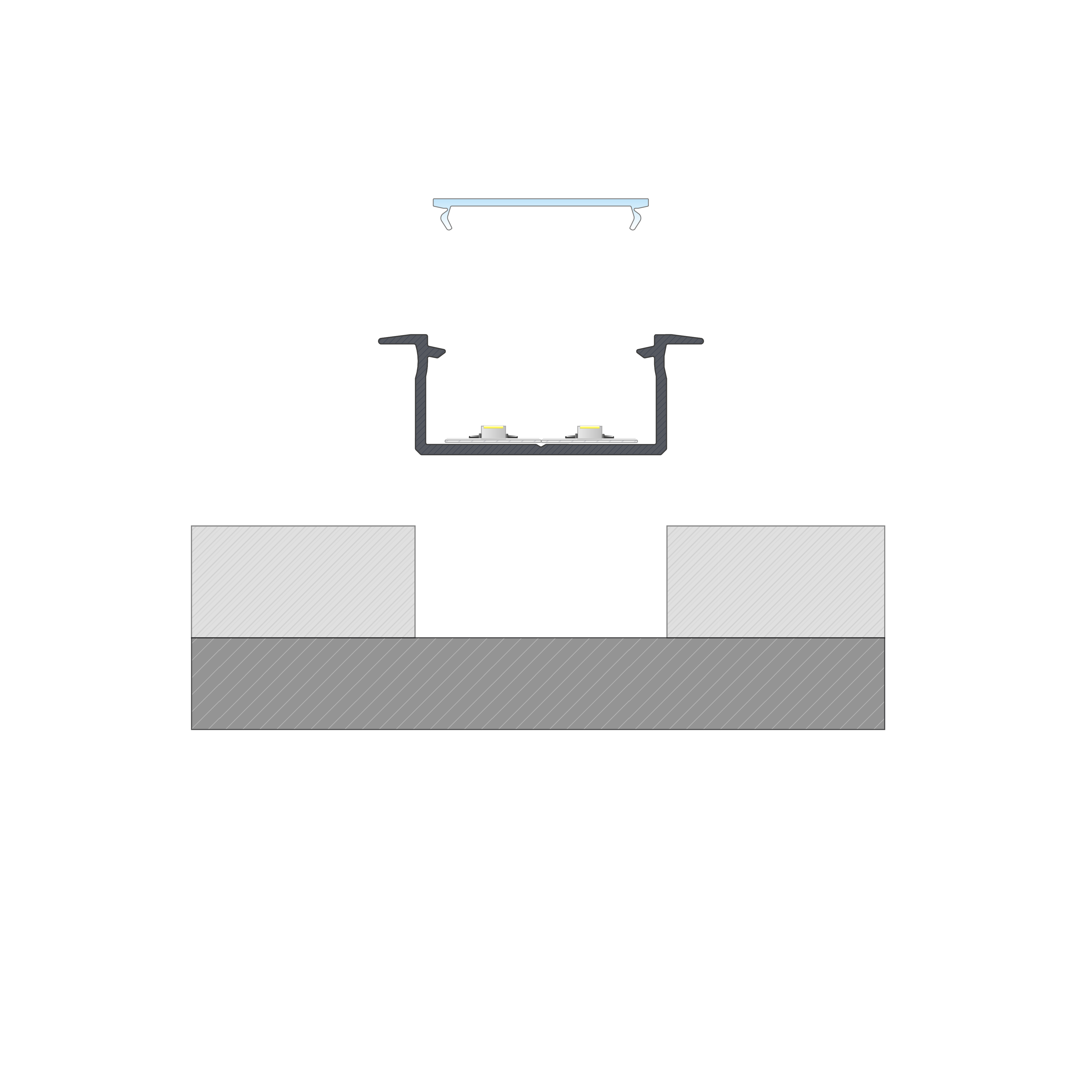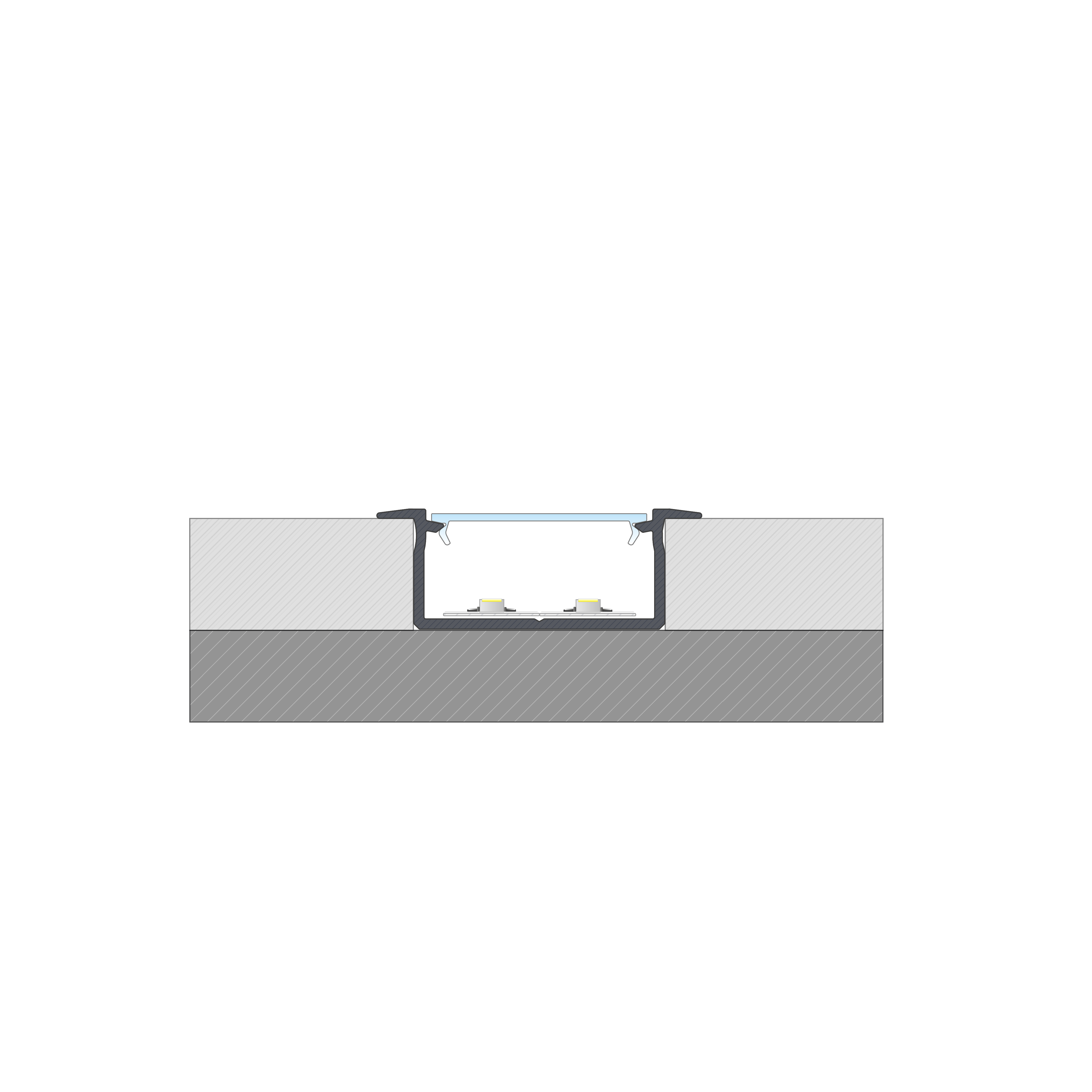 Efekt końcowy montażu profilu GEMI wpuszczanego z kloszem DOUBLE