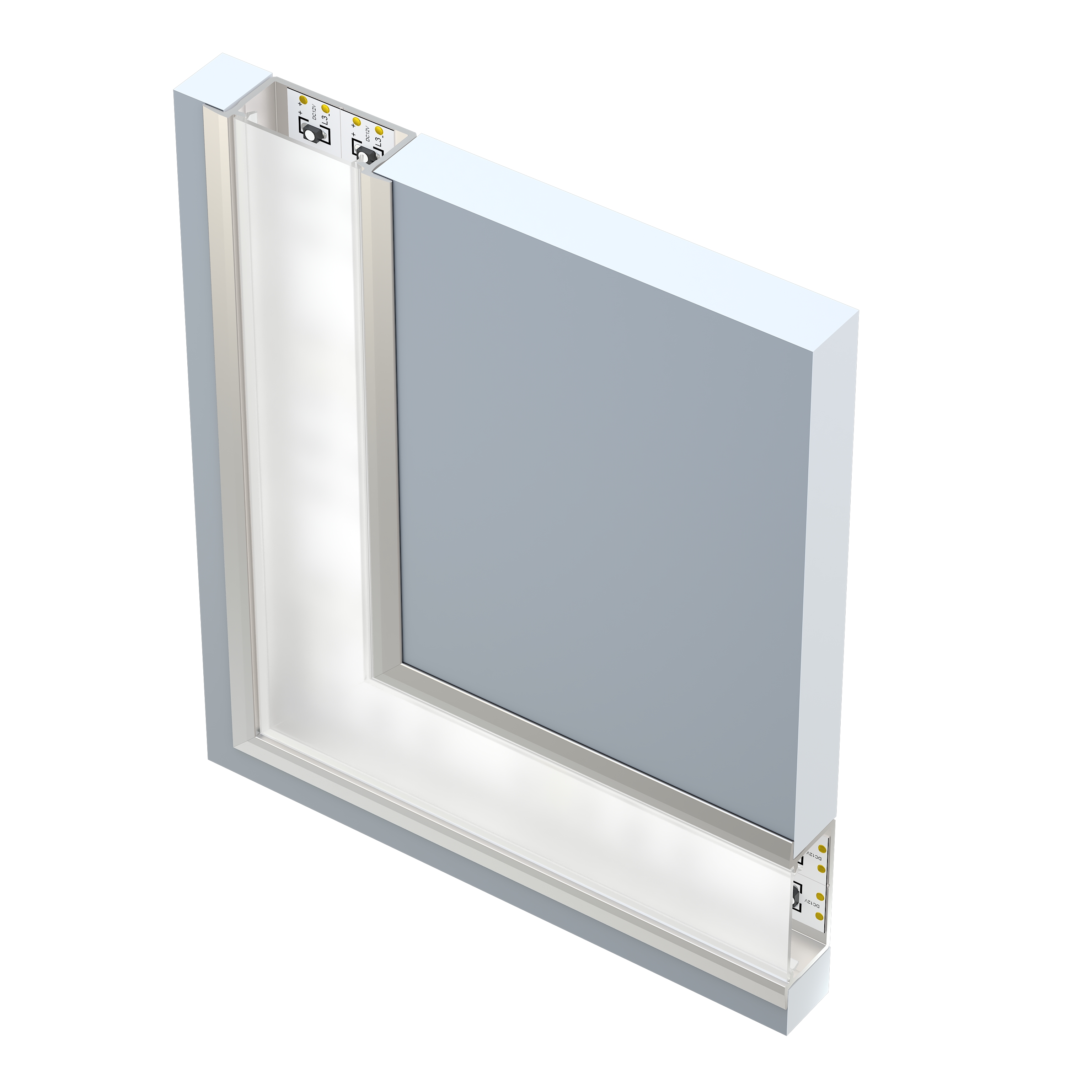 Łączenie profili GEMI z kloszem DOUBLE pod kątem 90° w płycie meblowej