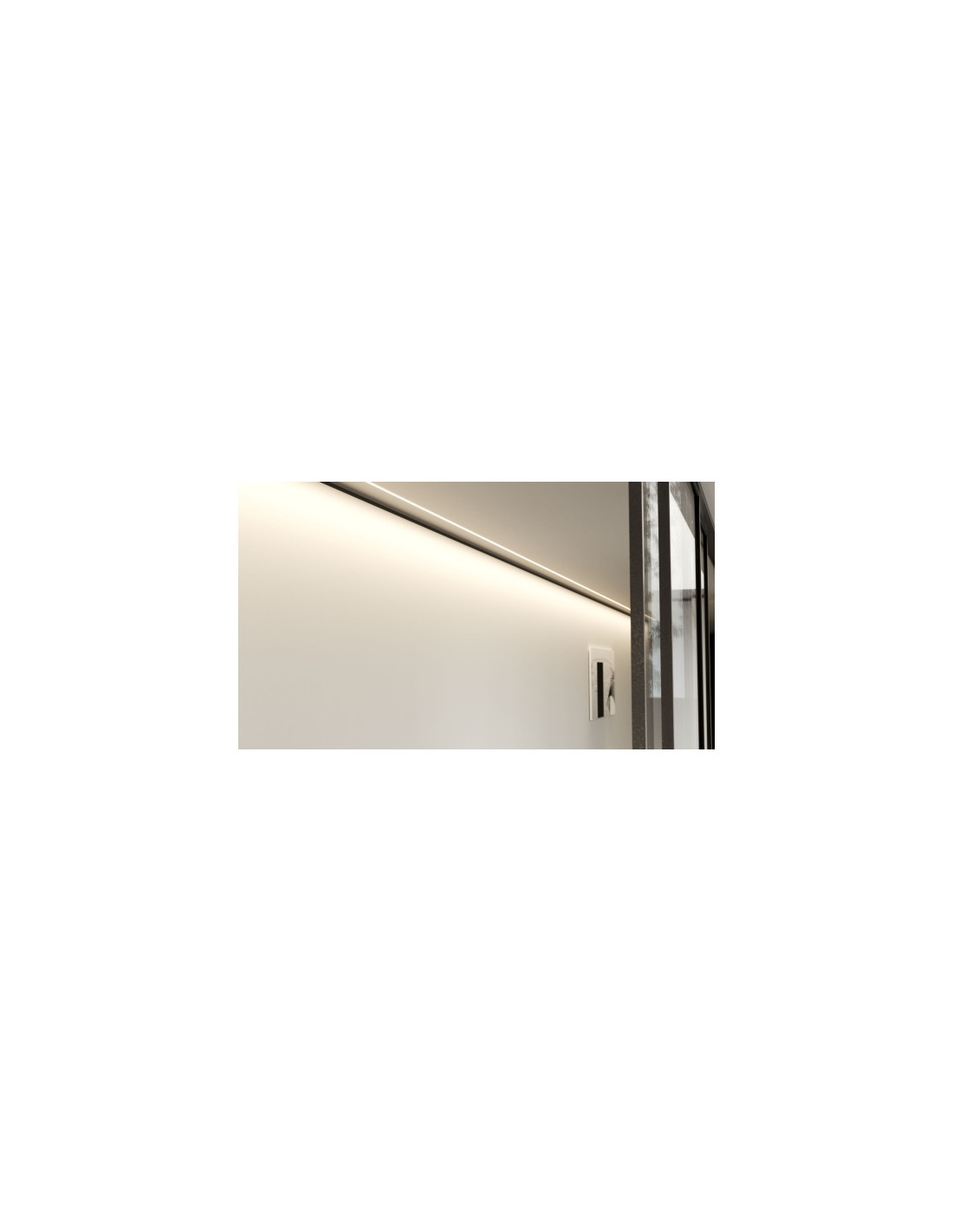 Podwójny profil LED do instalacji między dwoma płytami GK. Pozwala na szybki montaż przy zastosowaniu wkrętów oraz wykończenie gładzią szpachlową bez konieczności użycia siatki montażowej.