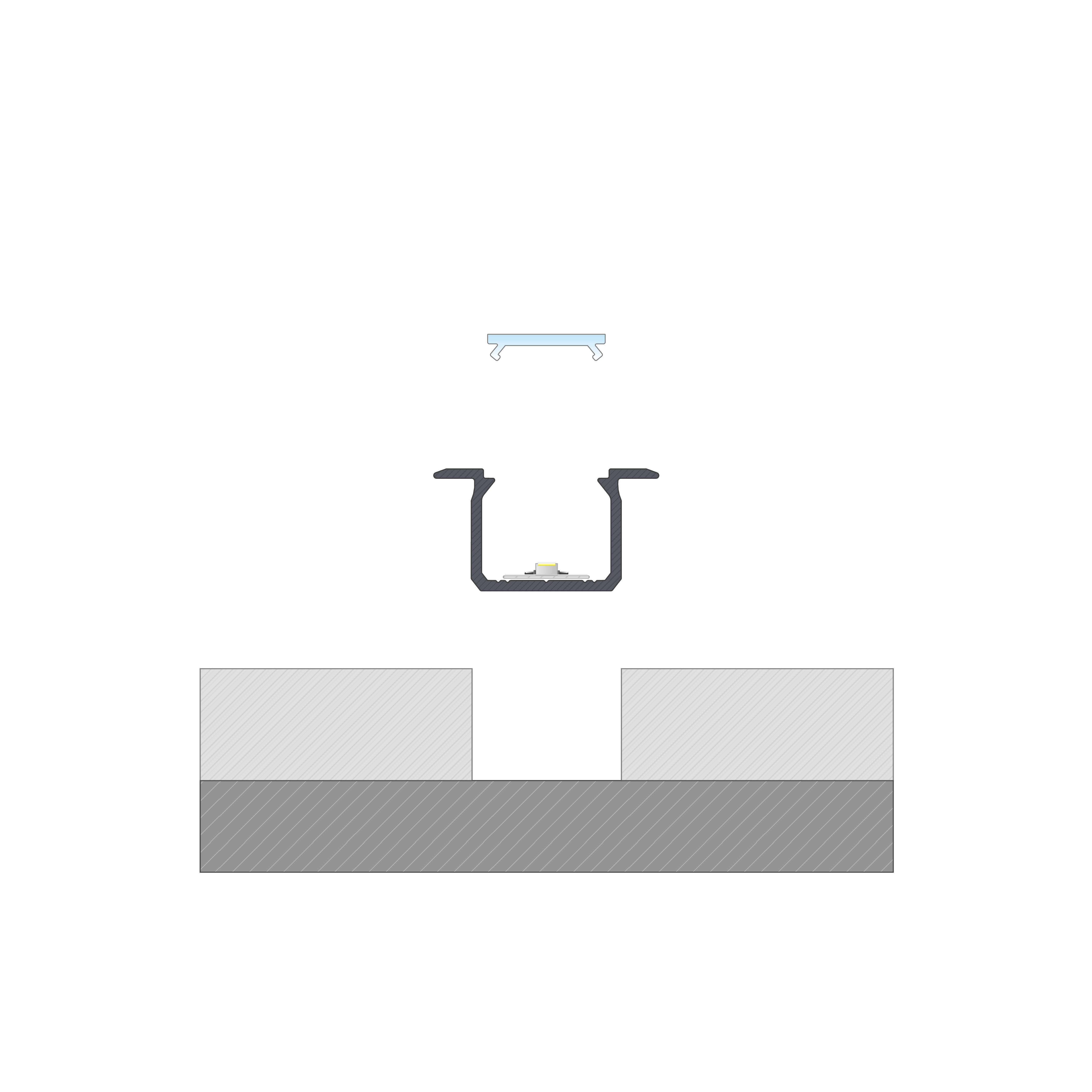 Efekt końcowy montażu profilu U wpuszczanego z kloszem BASIC