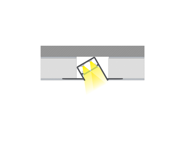Profil wpuszczany, do możliwego zagipsowania, przeznaczony do podświetleń akcentowych. 2 taśmy LED. Do zastosowania w suficie lub ścianie.