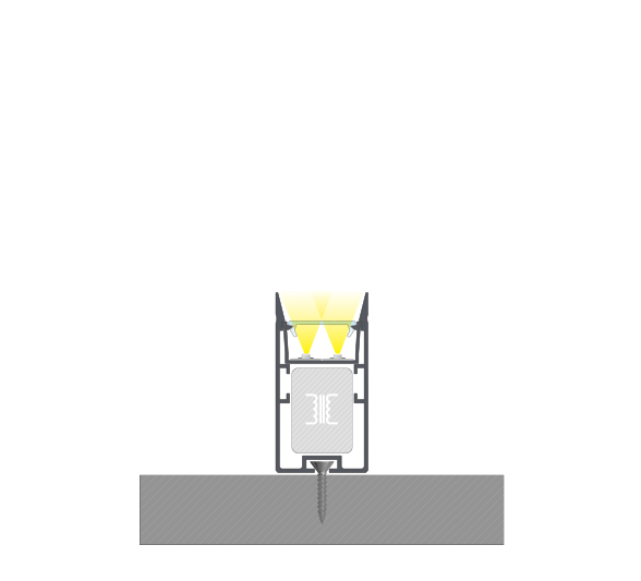Efekt końcowy montażu profilu FIXO z kloszem DOUBLE z wykorzystaniem profilu montażowego FIXO M1 z przeznaczeniem na zasilacz