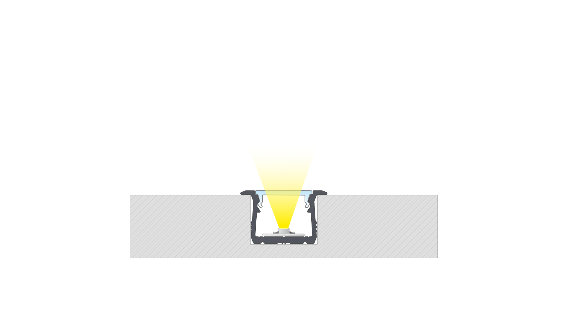 Efekt końcowy montażu profilu LED axin wpuszczanego z kloszem NANO.