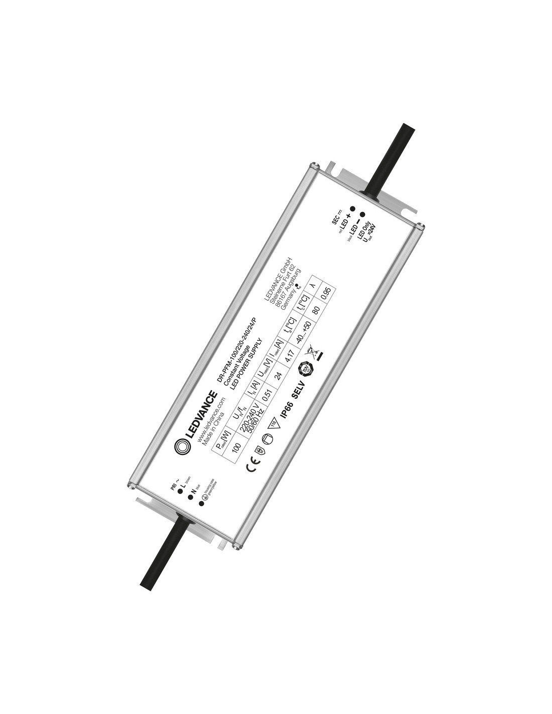Cechy produktu: Dostępne wersje o mocy: 30 W, 60 W, 100 W, 150 W i 250 W. Trwałość: do 50 tys. godzin (przy maks. temperaturze tc). Stopień ochrony: IP66. Zakres temperatur pracy : -40…50°C. Napięcie zasilania: 220…240 V. Częstotliwość pracy: 50/60 Hz. Zabezpieczenie przeciwprzepięciowe: do 4 kV (L-N) dla wersji o mocy 30/60 W, 6 kV (L-N) / 6 kV (L/N-PE) dla wersji o mocy 100/150/250 W. Zabezpieczenie w przypadku zwarcia elektrycznego i przed przeciążeniem. Zalety produktu: Doskonałe dopasowanie do uniwersalnych pasków LED 24 V. 5-letnia gwarancja. Bardzo stabilna moc wyjściowa. Szybka i łatwa instalacja dzięki wewnętrznemu okablowaniu. Bardzo wysoka wydajność i niezawodność. Możliwość instalacji w bardzo zimnym lub gorącym otoczeniu. Obszary zastosowań: Nadaje się do instalacji wewnętrznych i zewnętrznych. Oświetlenie fasady i budynku. Doskonałe rozwiązanie do oświetlenia przestrzeni publicznych. Łazienki, kuchnie i przestrzenie zewnętrzne. Biura, centra/ galerie handlowe, szpitale, restauracje, hotele. Porady dotyczące bezpieczeństwa: Wszystkie podłączenia elektryczne muszą być wykonane przez osobę wykwalifikowaną.. Uwaga, ryzyko porażenia prądem.. Przed instalacją należy odłączyć zasilanie.. Nie otwierać obudowy..