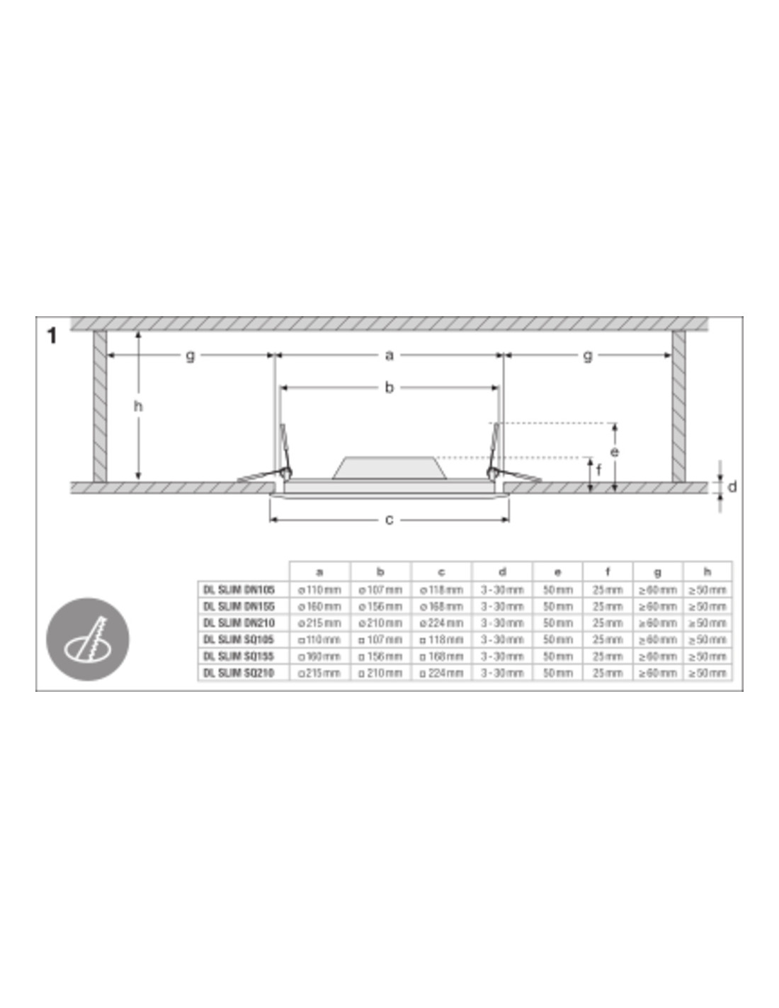 - Wysokość/głębokość wbudowania (mm) 50