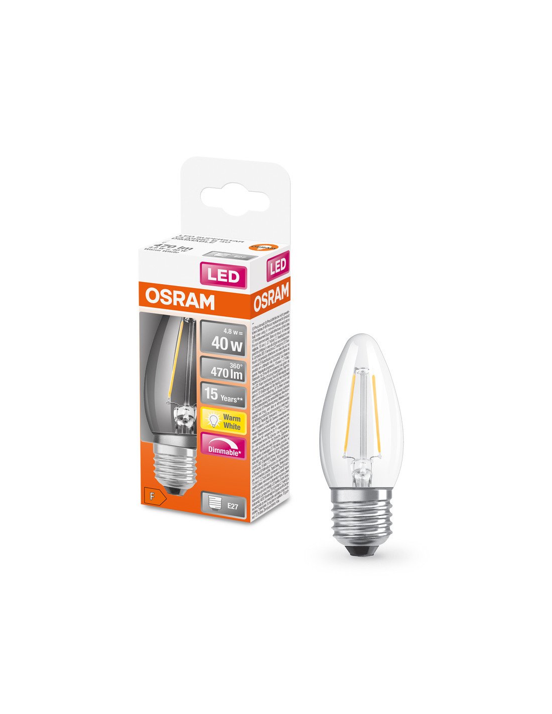 ŻARÓWKA LED SUPERSTAR RF CLB40 DIM 4,8W 2700K ciepła biała E27 470LM FIL