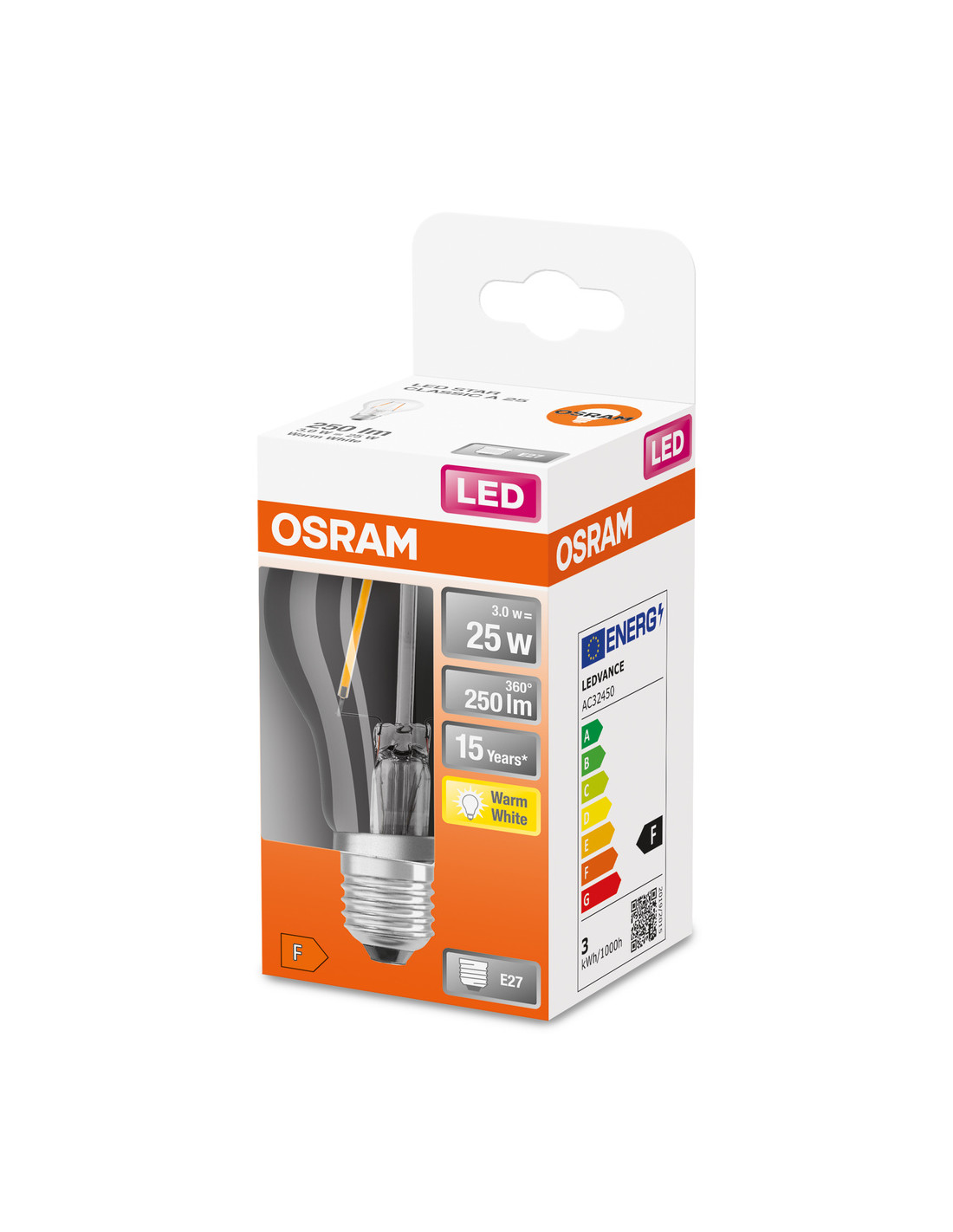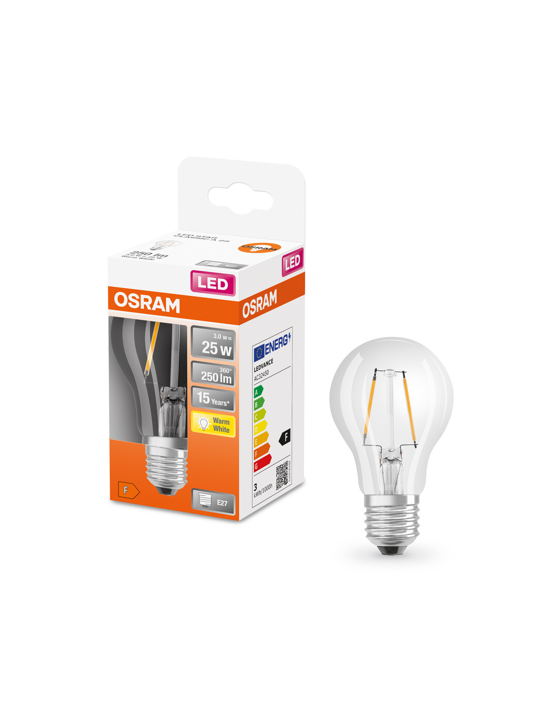 Cechy produktu: Profesjonalne lampy dla napięcia sieciowego. Brak możliwości regulacji strumienia świetlnego. Trwałość do 15 000 h. Kąt wiązki światła: do 300°. Lampa wykonana ze szkła. Dobra jakość światła, wskaźnik oddawania barw Ra: 80; stała chromatyczność. Zalety produktu: Lampy wyposażone w innowacyjną technologię „włókien” LED. Wygląd, wymiary i strumień świetlny porównywalne z tradycyjnymi żarówkami lub żarówkami halogenowymi. Niższe zużycie energii w porównaniu do lamp żarowych lub halogenowych. Brak promieniowania UV i podczerwonego w wiązce światła. Natychmiast 100 % światła, bez czasu nagrzewania. Obszary zastosowań: Doskonałe rozwiązanie do instalacji dekoracyjnych. Zastosowania domowe. Oświetlenie ogólne. Do użytku na zewnątrz tylko w odpowiednich oprawach zewnętrznych. Porady dotyczące bezpieczeństwa: Nie dotykaj lampy, jeśli jest stłuczona.. Nie wolno używać, jeśli zewnętrzne źródło światła jest uszkodzone..