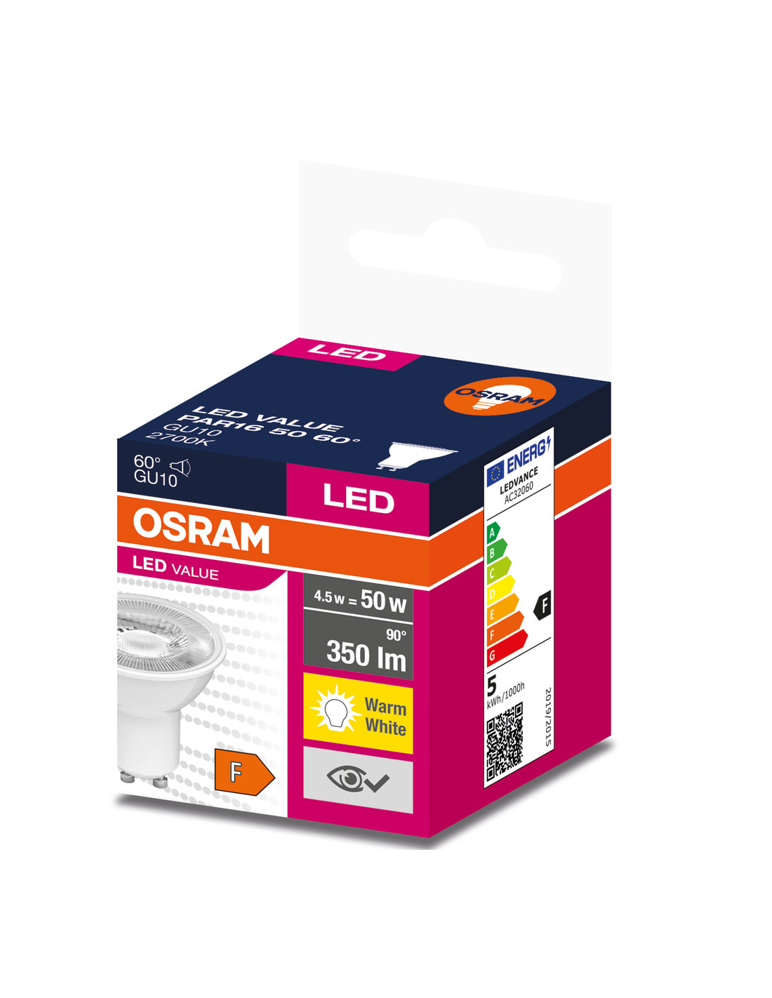 ŻARÓWKA LED LVPAR16 50 4.5W 2700K ciepła biała  350LM 60° GU10 EUE