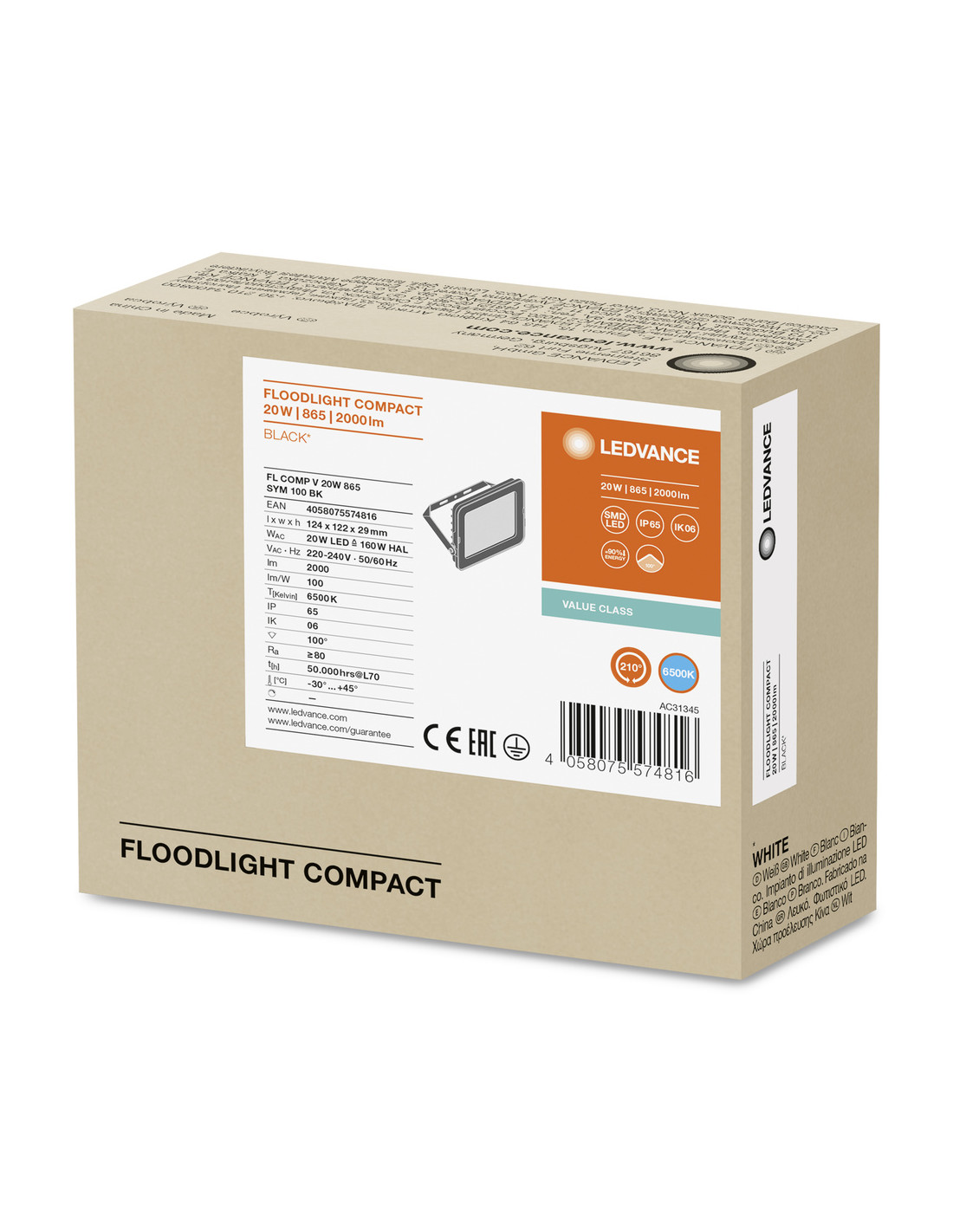 NAŚWIETLACZ FLOOD COMPACT V 20W/6500K SYM 2000LM BK IP65