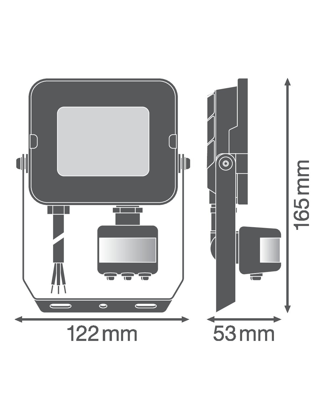 Cechy produktu: Uniwersalny czujnik ruchu i światła. Czujnik z możliwością obrotu o 350° i pochylenia o 180°. Odbłyśnik, symetryczny rozsył światła z kątem rozsyłu 100° x 100°. Zaciski montażowe z kątem 30° i szerokim obszarem obrotu. Fabrycznie zainstalowany, elastyczny przewód o długości 1 m (H05RN-F), 3 x 1,0 mm. Zalety produktu: Wytrzymała, jednocześnie lekka i zwarta konstrukcja. Wymaganie zoptymalizowanego oświetlenia spełnione dzięki uniwersalnemu i programowalnemu czujnikowi. Łatwa regulacja zakresu czujnika wykrywania światła i czasu pracy. Możliwość wyłączenia działania czujnika, poprzez wykonanie odpowiedniej sekwencji włączania i wyłączania zasilania oprawy. Bezpieczne i bardzo równomierne oświetlenie dzięki wykonanemu ze szkła hartowanego matowemu kloszowi. Brak górnego współczynnika rozsyłu światła (ULOR 0%) w przypadku zamontowania pod kątem 0°. Oszczędność energii aż do 90% (w porównaniu z naświetlaczami z lampami halogenowymi). 3-letnia gwarancja. Obszary zastosowań: Zamiennik naświetlaczy do żarówek halogenowych. Zastosowanie na zewnątrz (IP65). Strefy publiczne. Elewacje budynków. Ogrody, balkony oraz inne miejsca na zewnątrz budynków. Tereny budowy. Porady dotyczące bezpieczeństwa: Zewnętrzny elastyczny przewód lub przewód znajdujący się w oprawie oświetleniowej nie podlega wymianie; jeśli przewód ulegnie uszkodzeniu, oprawa zostanie zniszczona.. Blok zaciskowy nie jest dołączony. Montaż musi być wykonany przez osobę wykwalifikowaną.. Uwaga, ryzyko porażenia prądem.. Produkt w klasie ochrony I. Wszystkie przewodzące prąd, metalowe części obudowy, które mogą absorbować napięcie podczas pracy lub podczas konserwacji w przypadku awarii, muszą być stale PODŁĄCZONE do przewodu uziemiającego..