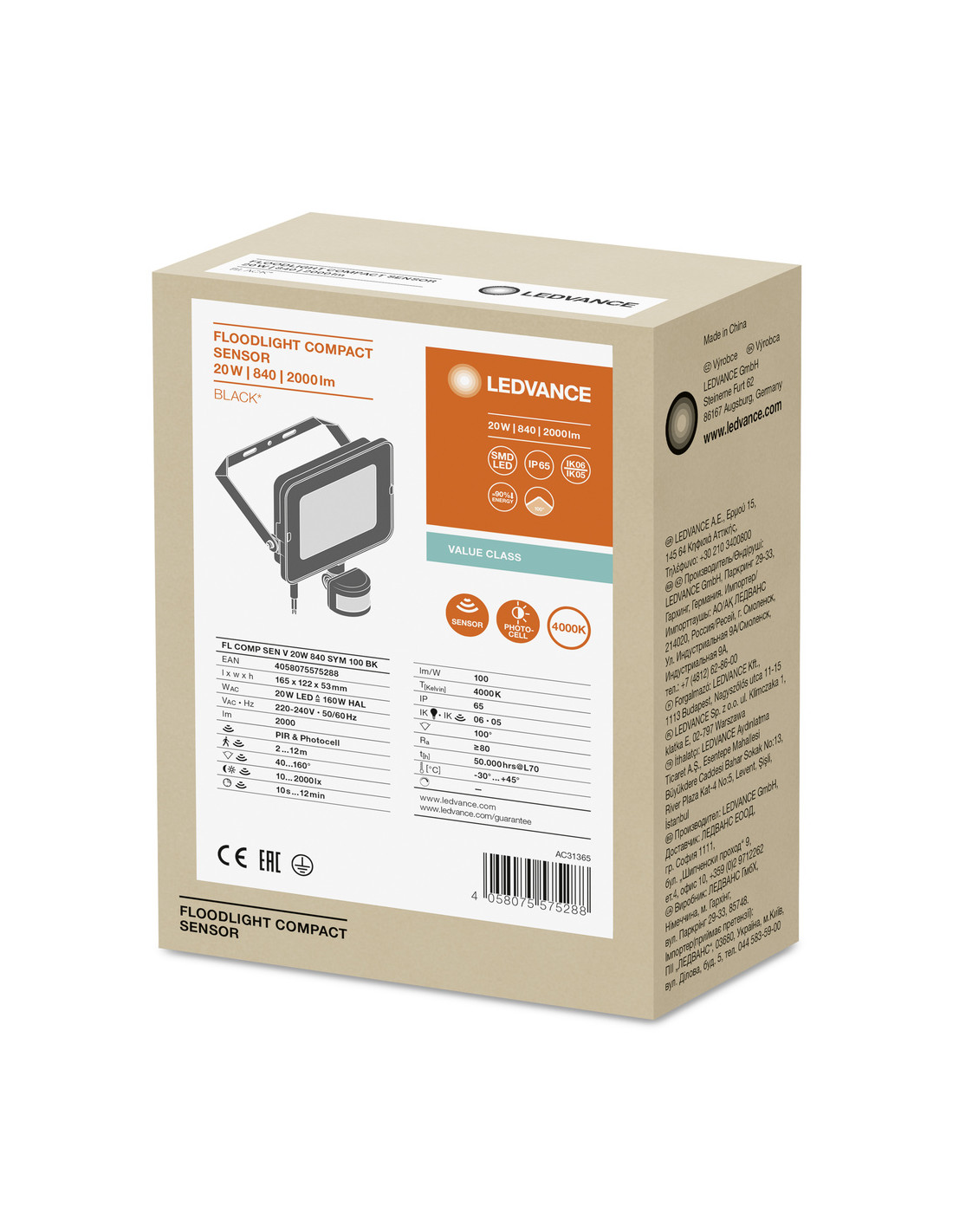 NAŚWIETLACZ FLOOD COMPACT SENSOR V 20W/4000K SYM 2000LM BK IP65