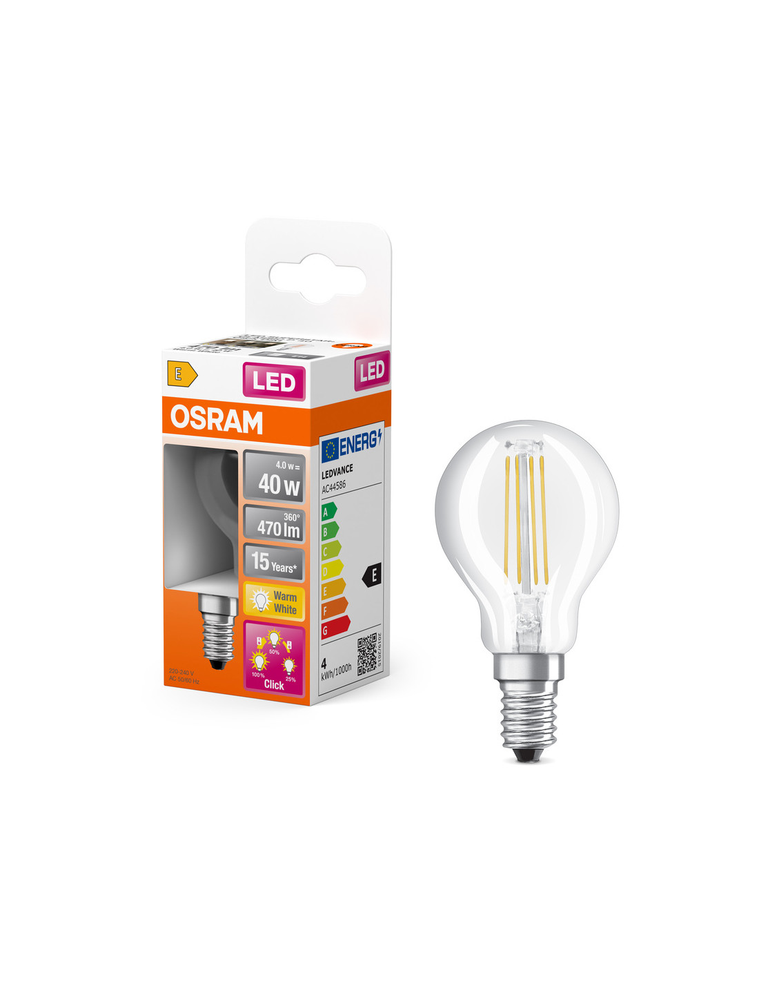 ŻARÓWKA LED STAR+ CLP40 3CLICK DIM 4W 2700K ciepła biała FIL 470LM E14
