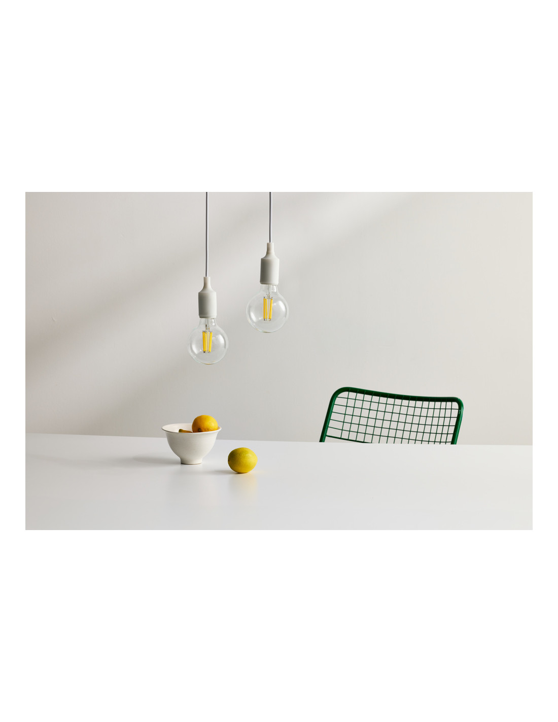 Cechy produktu: Lampy LED dla napięcia sieciowego. Kąt wiązki światła: do 300°. Ściemnialne. Wskaźnik oddawania barw Ra: 90. Zalety produktu: Lampy wyposażone w innowacyjną technologię „włókien” LED. Wygląd, wymiary i strumień świetlny porównywalne z żarówkami halogenowymi. Widmo światła naturalnego z doskonałym wskaźnikiem oddawania barw Ra > 90. Znacznie zmniejszony zakres niebieskiego światła. Poprawiony komfort widzenia i zmniejszone zmęczenie wzroku. Niższe zużycie energii w porównaniu do lamp żarowych lub halogenowych. Natychmiast 100 % światła, bez czasu nagrzewania. Niskie tętnienie światła. Obszary zastosowań: Doskonałe rozwiązanie do instalacji dekoracyjnych. Zastosowania domowe. Oświetlenie ogólne. Do użytku na zewnątrz tylko w odpowiednich oprawach zewnętrznych. Porady dotyczące bezpieczeństwa: Nie dotykaj lampy, jeśli jest stłuczona.. Nie wolno używać, jeśli zewnętrzne źródło światła jest uszkodzone..