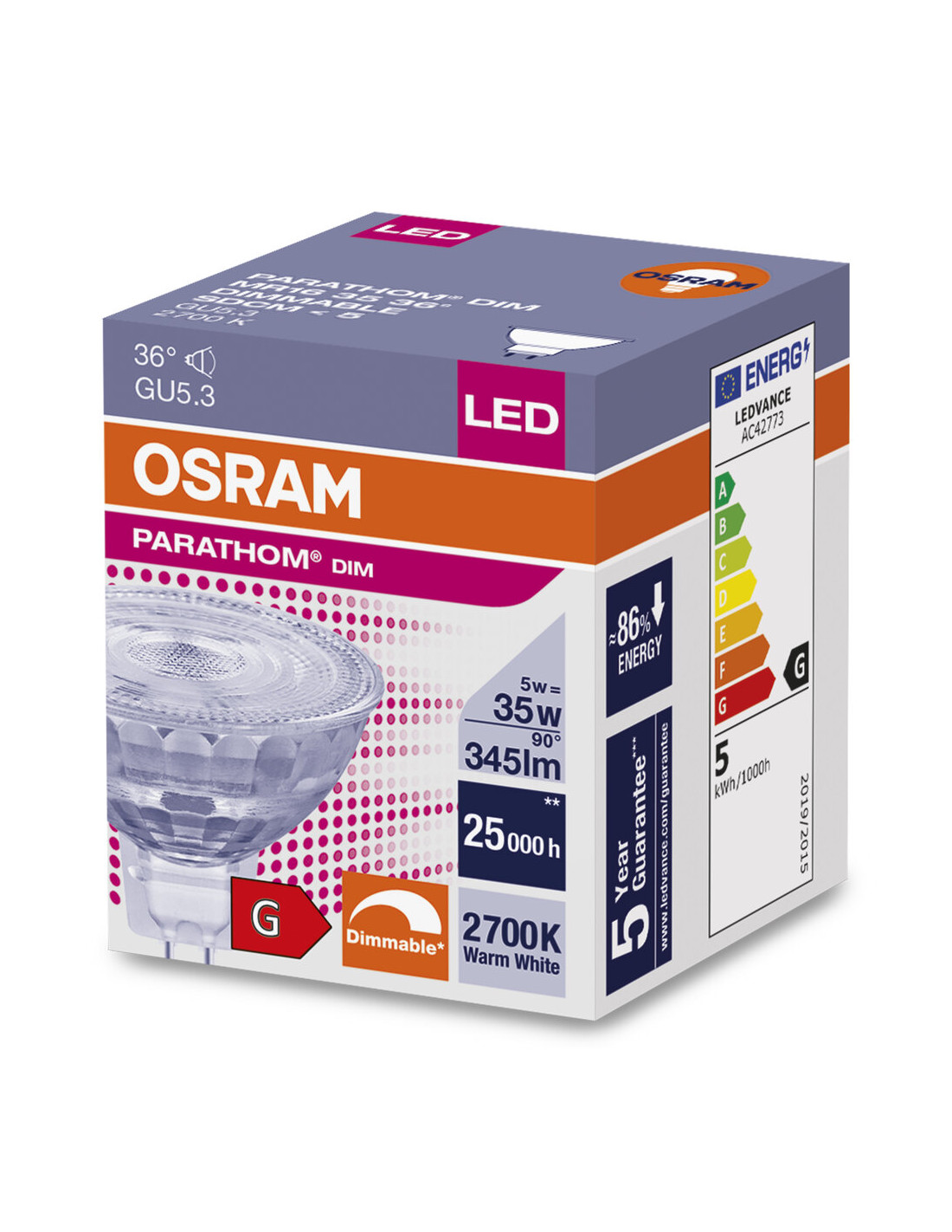ŻARÓWKA LED PARATHOM MR16 DIM 35 5W 2700K ciepła biała CRI90 36° GU5.3