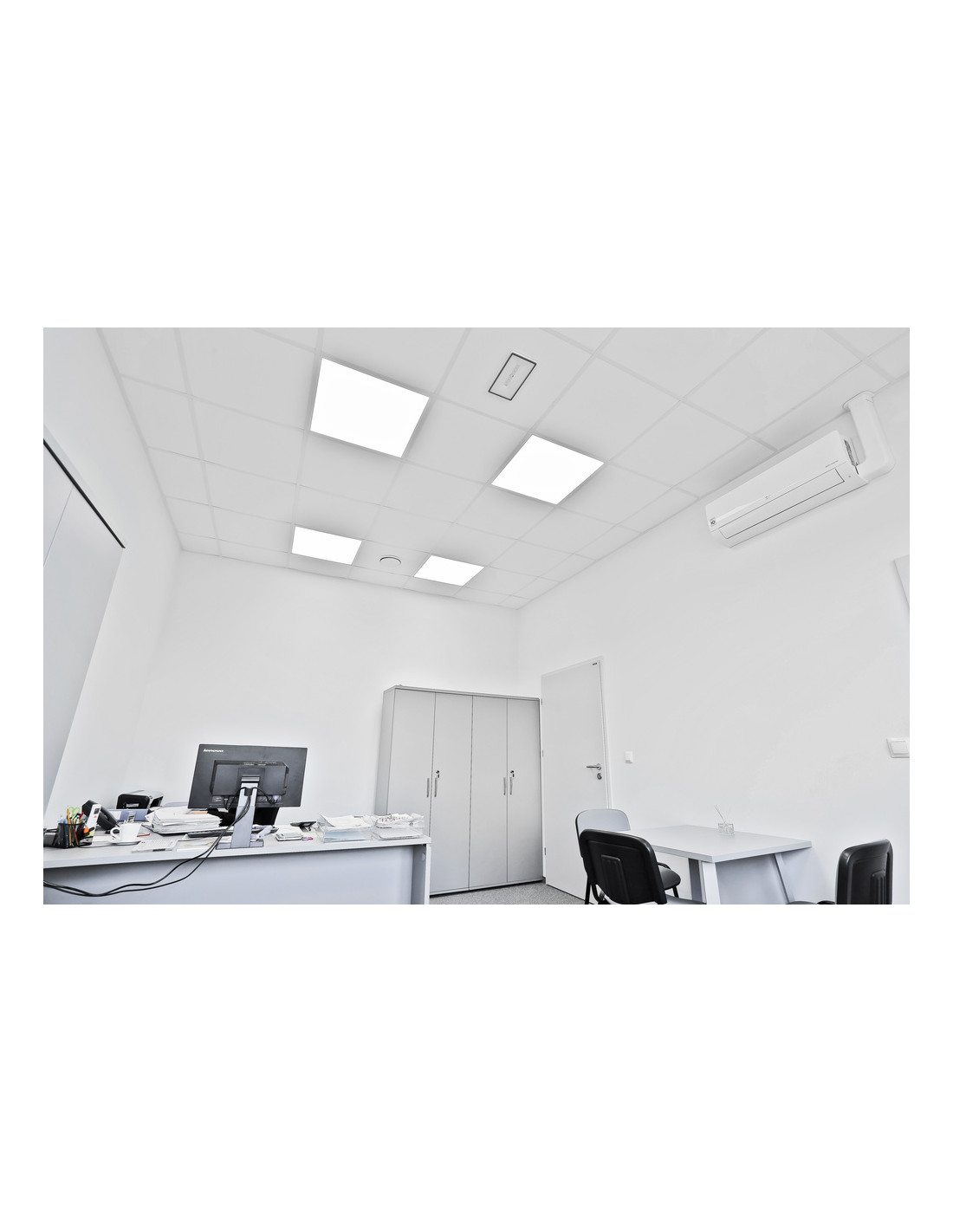 Cechy produktu: Rama z wytłaczanego aluminium. Dyfuzor z polistyrenu. Trwałość (L80/B50): do 50 tys. godzin (przy 25°C). Zalety produktu: Niewielkie tętnienie światła dzięki specjalnemu statecznikowi elektronicznemu. Oszczędność energii dzięki wysokiej skuteczności świetlnej systemu: do 110 lm/W. Zewnętrzny sterownik z opcjonalną funkcją 3-biegunowego okablowania przelotowego. Dostępne wersje z EUZ DALI. 5-letnia gwarancja. Obszary zastosowań: Bezpośredni zamiennik świetlówkowych opraw oświetleniowych. Biura, sale konferencyjne. Recepcje, hole, korytarze, windy. Odpowiednie oprawy do zabudowy w suficie, moduł 600 x 600 mm. Wyposażenie / Akcesoria: Dostępne są akcesoria do kilku typów montażu. Linka zabezpieczająca oprawę oświetleniową w zestawie. Wstępnie zainstalowane wsporniki zabezpieczające. Stateczniki zewnętrzne w zestawie. Nadaje się do użytku z Emergency Conversion Box. Porady dotyczące bezpieczeństwa: Wszystkie podłączenia elektryczne muszą być wykonane przez osobę wykwalifikowaną.. Uwaga, ryzyko porażenia prądem.. Oprawy nie nadają się do pokrywania materiałem termoizolacyjnym..