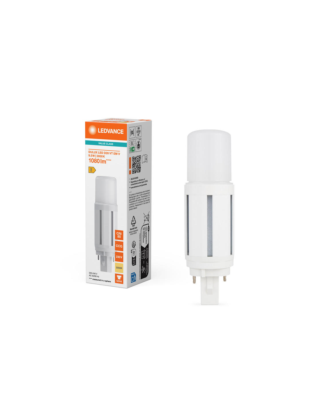 ŚWIETLÓWKA LED V DULUX LED D26 VT EM 9.5W 3000K ciepła biała G24D-3 1080LM