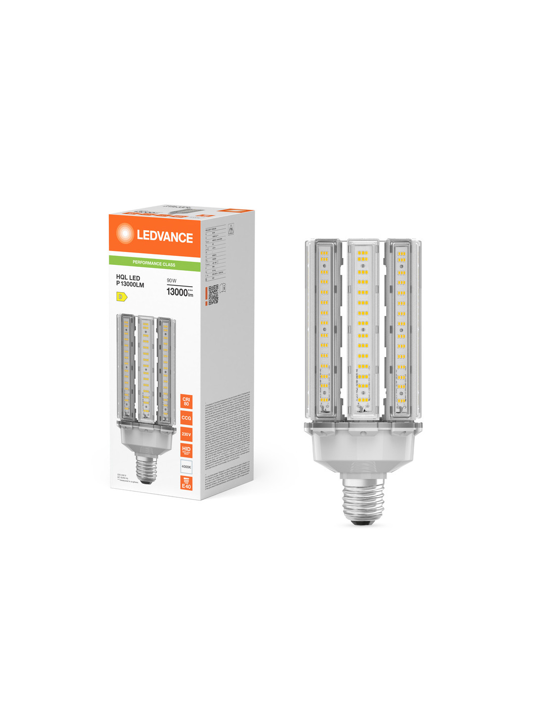 Cechy produktu: Zamiennik lamp rtęciowych HQL: nadaje się do zasilania przez tradycyjny statecznik magnetyczny (CCG) do lamp HQL lub bezpośrednio z sieci 230 V. Współczynnik mocy: 0,9. Stopień ochrony: IP65. Wysoka ochrona przeciwprzepięciowa: do 6 kV (L-N). Zalety produktu: Pozwala zaoszczędzić do 78 % energii w przypadku zastąpienia lamp rtęciowych (HQL). Niski koszt konserwacji dzięki długiej trwałości. Natychmiast 100 % światła, bez czasu nagrzewania. Obszary zastosowań: Ulice. Oświetlenie przestrzeni. Strefy dla pieszych. Parki. Zastosowania zewnętrzne - tylko w odpowiednich oprawach. Porady dotyczące bezpieczeństwa: Źródło świat może być większa i cięższa od wymienianego źródła światła. Przed montażem należy sprawdzić, czy oprawa, a zwłaszcza jej uchwyt, udźwigną ciężar wymienianego źródła światła. W przypadku modeli o mocy 90W należy zainstalować linkę zabezpieczającą dołączoną do opakowania.. Nie nadaje się do pracy z zapłonnikami.. Zastosowanie kondensatora może doprowadzić do obniżenia współczynnika mocy systemu.. W przypadku montażu poziomego punkt tc lampy powinien znajdować się w górnej części lampy.. Zastosowanie w małych i wąskich oprawach z wąskimi odbłyśnikami nie jest rekomendowane. Wszystkie podłączenia elektryczne muszą być wykonane przez osobę wykwalifikowaną..