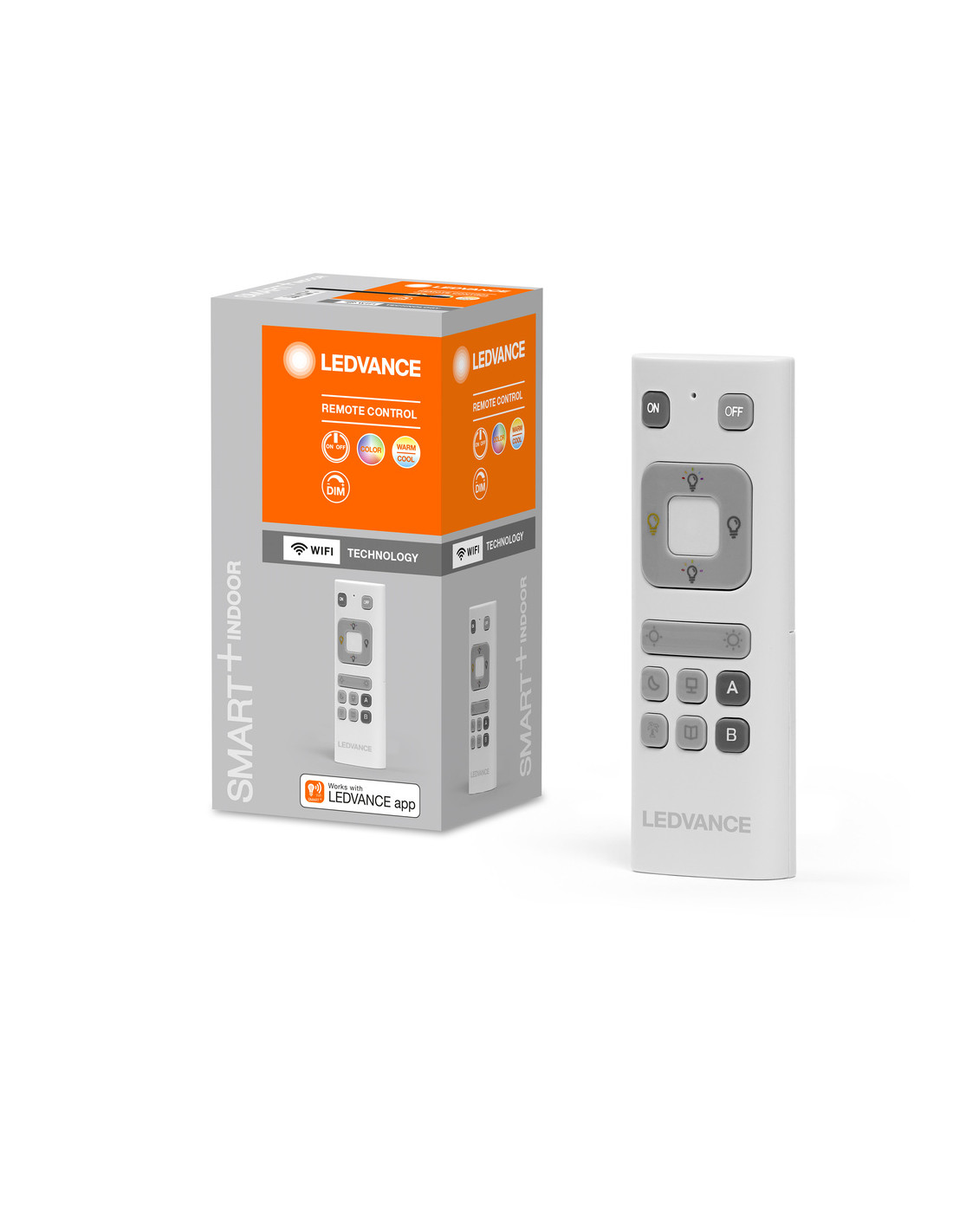 Cechy produktu: Możliwość sterowania za pomocą aplikacji LEDVANCE SMART+ (z systemem Android co najmniej 8.0 lub iOS 14.0). Włączanie / wyłączanie i ściemnianie. Regulowana barwa światła za pomocą Tunable White: od ciepłobiałej do zimnobiałej. Regulacja RGB. Regulowane sceny świetlne. Kontrola do 15 produktów SMART + WiFi. Protokół sieciowy: WiFi. Zalety produktu: Bezprzewodowe sterowanie kompatybilnymi produktami SMART + WiFi. Sterowanie produktami SMART + Wifi bez użycia sterowania głosowego i aplikacji. Wybór zaprogramowanych scen świetlnych za pomocą pilota. Obszary zastosowań: Inteligentny dom w oświetleniu wewnętrznym i zewnętrznym. Kontroluje do 15 produktów SMART + WiFi poprzez połączenie zbliżeniowe. Wyposażenie / Akcesoria: Do sterowania za pomocą aplikacji LEDVANCE SMART+ wymagany jest smartfon lub tablet (z systemem Android co najmniej 8.0 lub iOS 14.0). Wymagana aplikacja LEDVANCE SMART + WiFi (tylko do konfiguracji produktów SMART + WiFi). Wymaga baterii 2xAAA (brak w zestawie). Porady dotyczące bezpieczeństwa: Ostrzeżenie dotyczące baterii: Przechowywać poza zasięgiem dzieci. Połknięcie może prowadzić do oparzeń chemicznych, perforacji tkanek miękkich i śmierci. Ciężkie oparzenia mogą wystąpić w ciągu 2 godzin od połknięcia. Natychmiast zasięgnij porady lekarza. . Prosimy unikać: Maksymalna temperatura otoczenia: +35 °C. Wymiana baterii na nieprawidłowy typ, który może obejść zabezpieczenie (na przykład w przypadku niektórych typów baterii litowych). Wysokość podczas pracy: 2000 m. Utylizacja baterii w ogniu lub gorącym piekarniku, lub mechaniczne zgniatanie lub cięcie baterii, co może spowodować wybuch.. Jeśli komora baterii (jeśli dotyczy) nie zamyka się bezpiecznie, zaprzestań używania produktu i trzymaj go z dala od dzieci. Jeśli podejrzewasz, że baterie mogły zostać połknięte lub umieszczone w jakiejkolwiek części ciała, natychmiast zwróć się o pomoc lekarską..