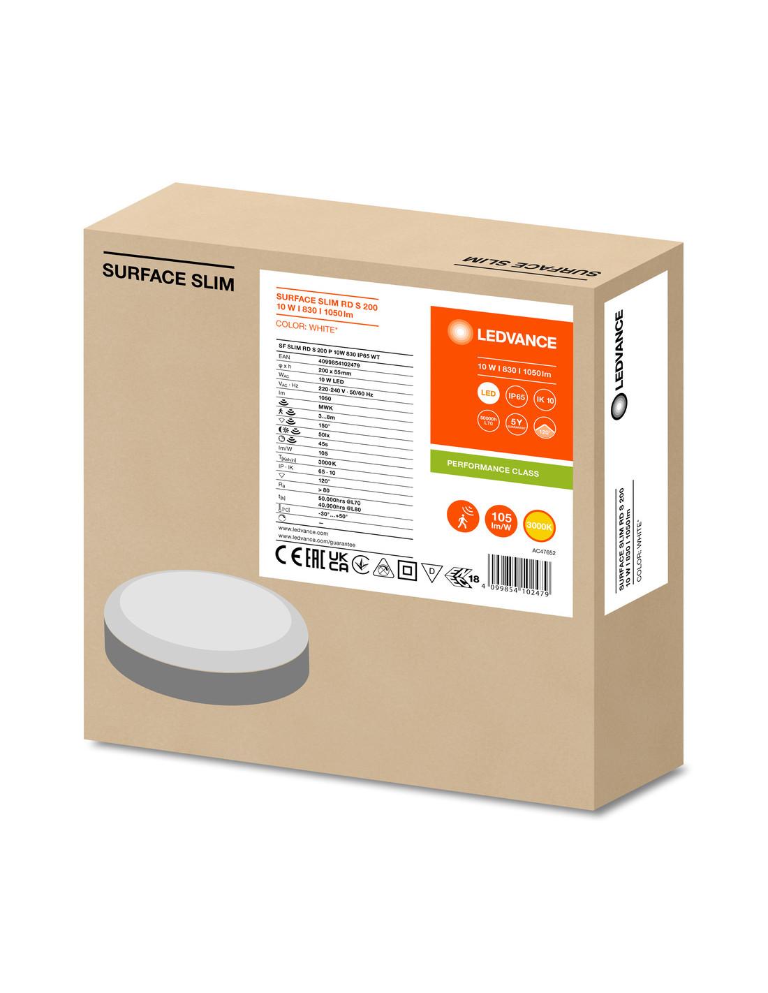 PLAFON SURFACE SLIM RD SENSOR 200 P 10W 3000K ciepła biała IP65 IK10