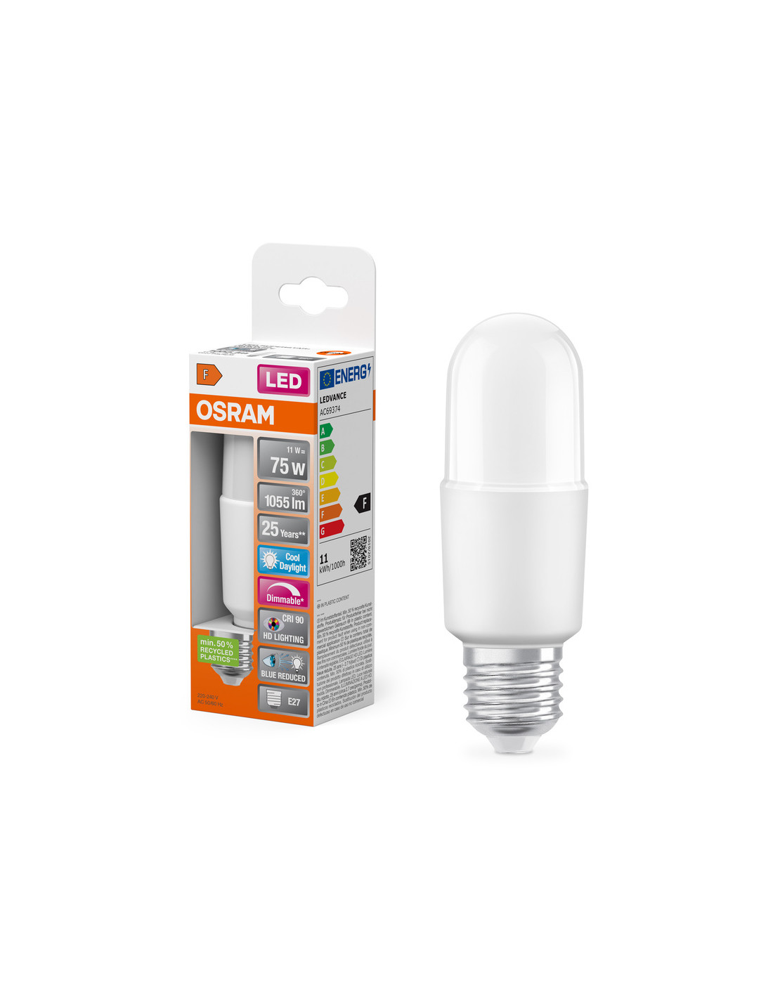 ŻARÓWKA LED SUPERSTAR PLUS STICK 75D 11W zimna biała 1050LM FR E27