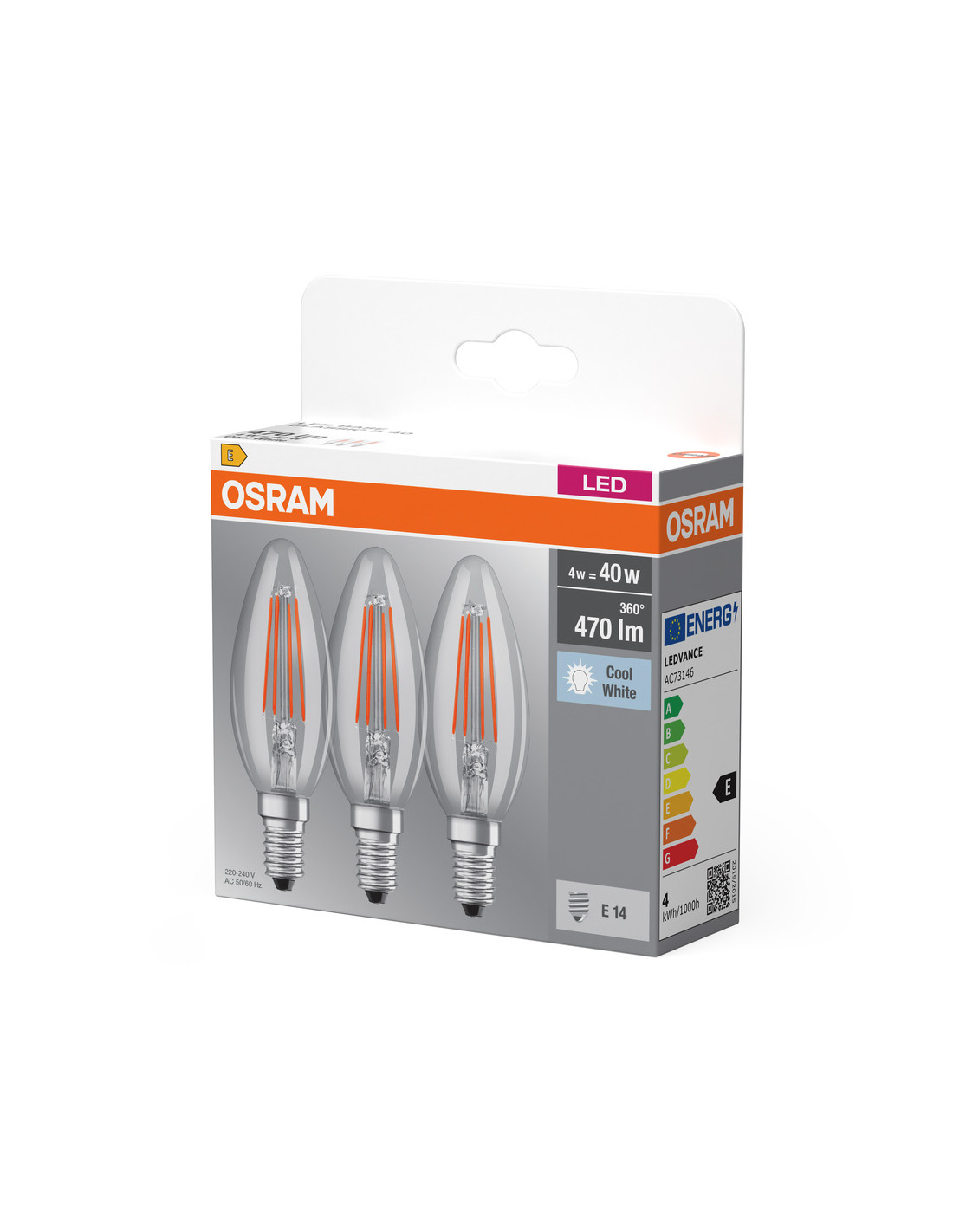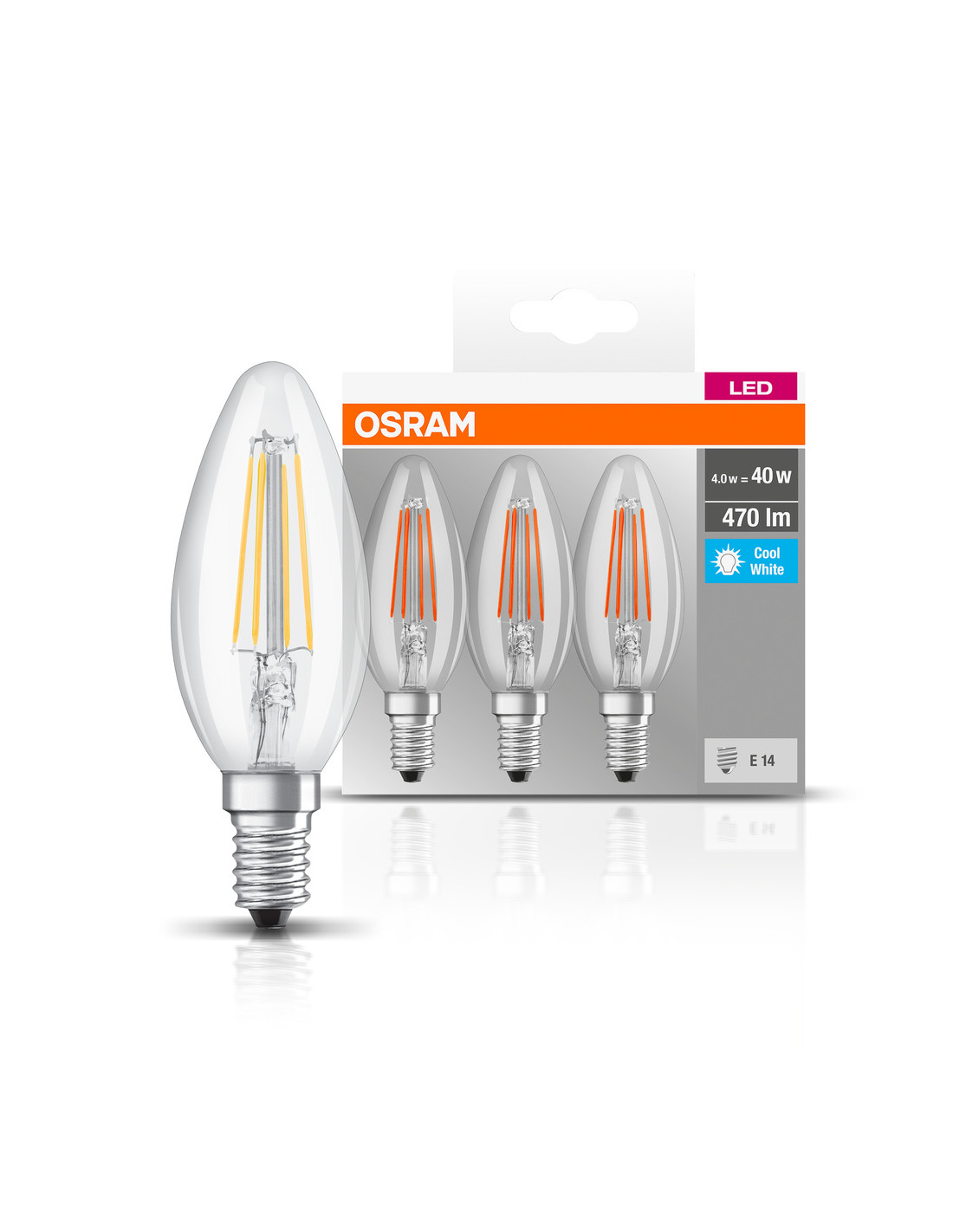 OSRAM 3 szt. przezroczysta lampa LED świeczka E14 4 W BASE zimnobiała.