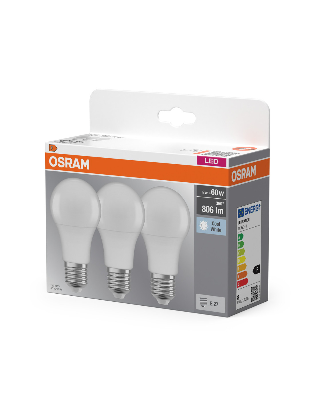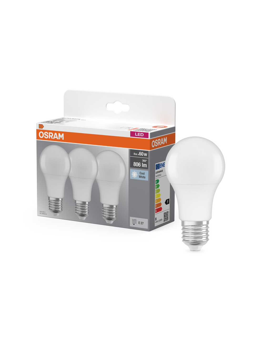 OSRAM 3 szt. matowa lampa LED E27 8,5 W BASE CLASSIC zimnobiała.