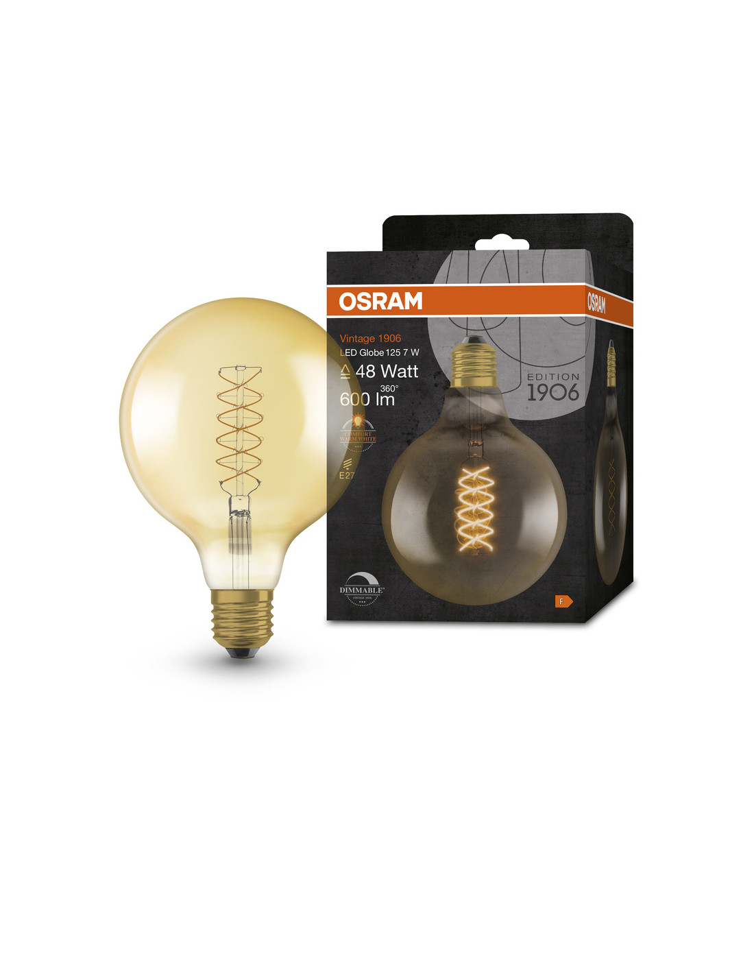 ŻARÓWKA LED 1906 VINTAGE LED GOLD48 GLOB125 DIM 7W 2200K 600LM E27 SFIL