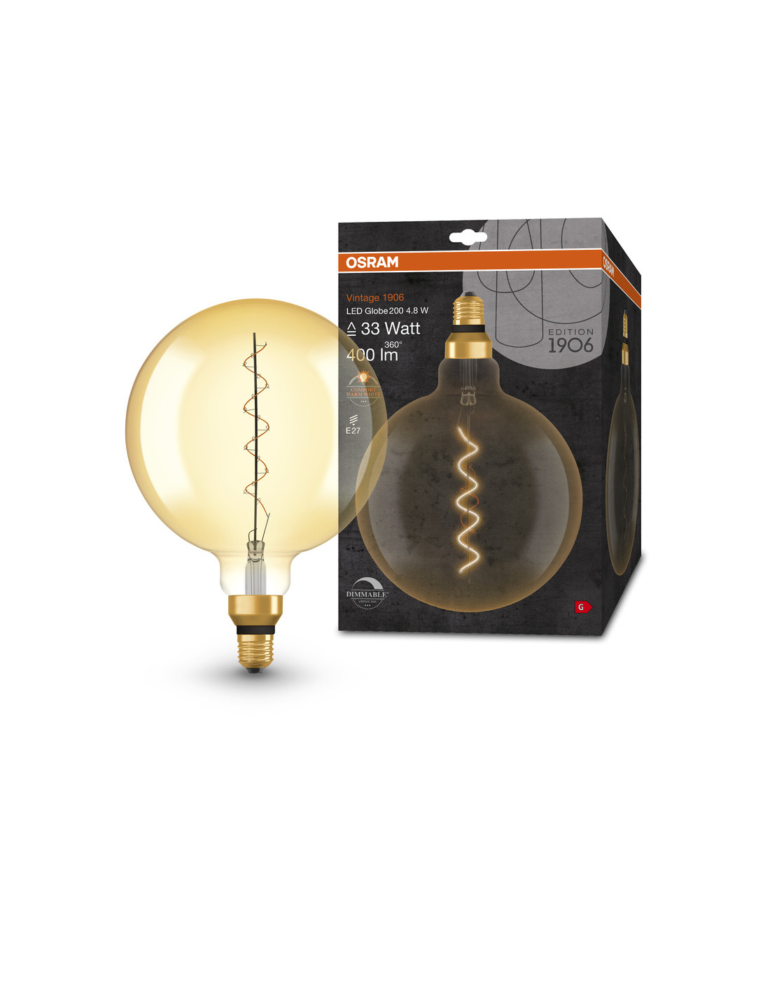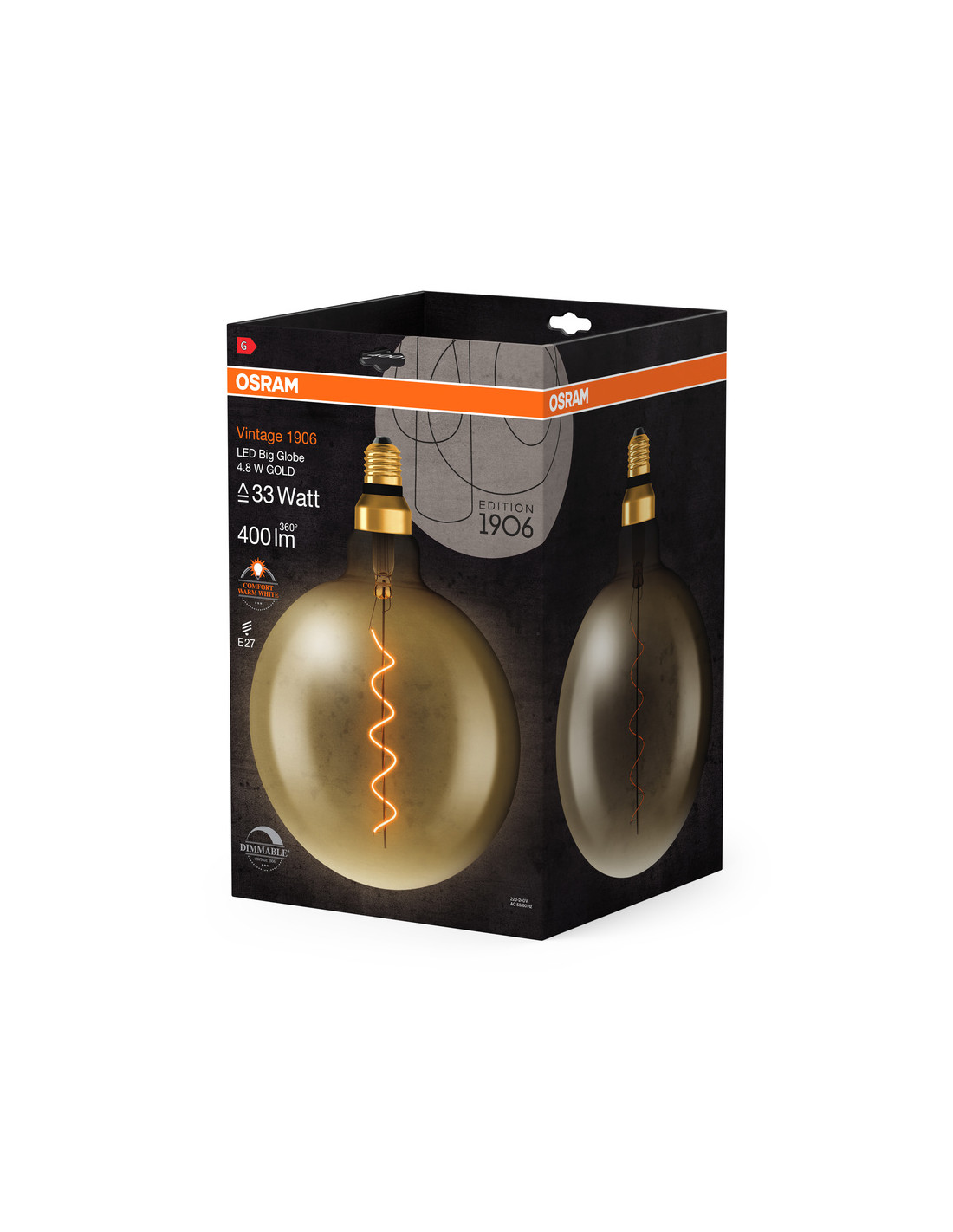 ŻARÓWKA LED 1906 VINTAGE LED GOLD33 GLOB200 DIM 4,8W 2200K E27 400LM SFIL