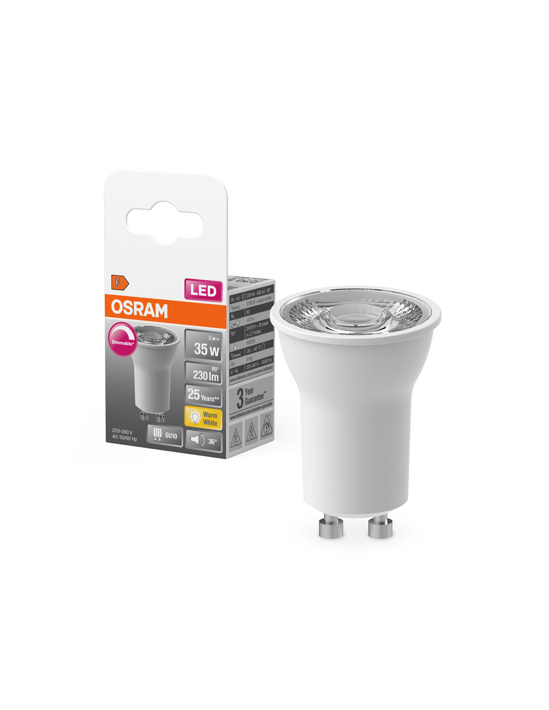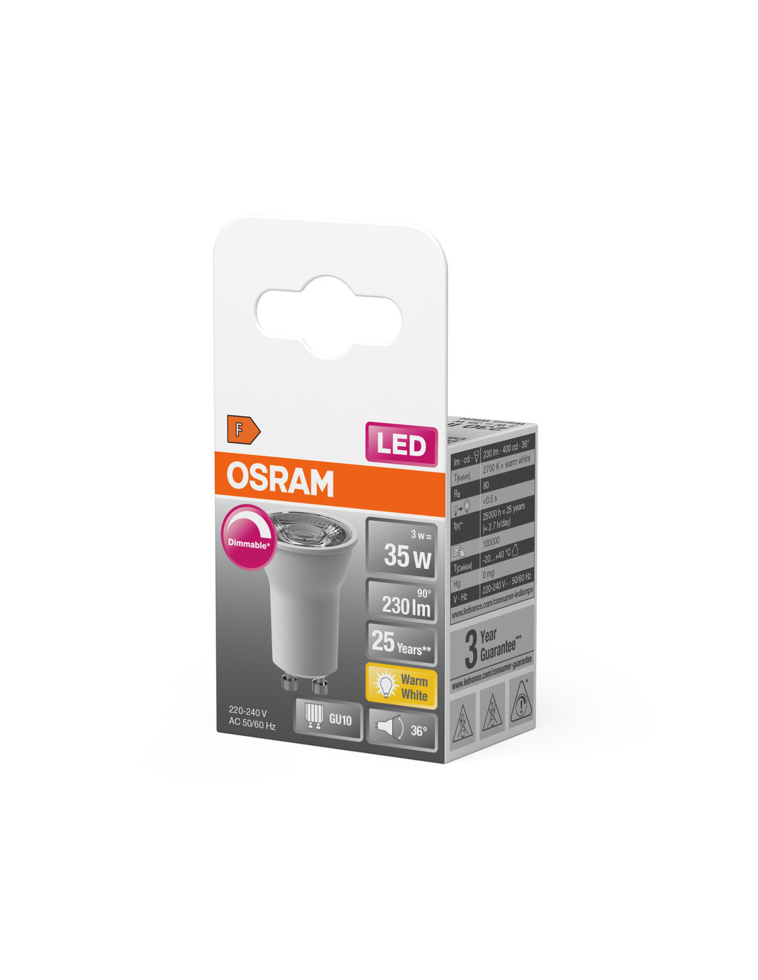 ŻARÓWKA LED SUPERSTAR PAR11 D35 36° 3W/827 ciepła biała 230LM 230V GU10