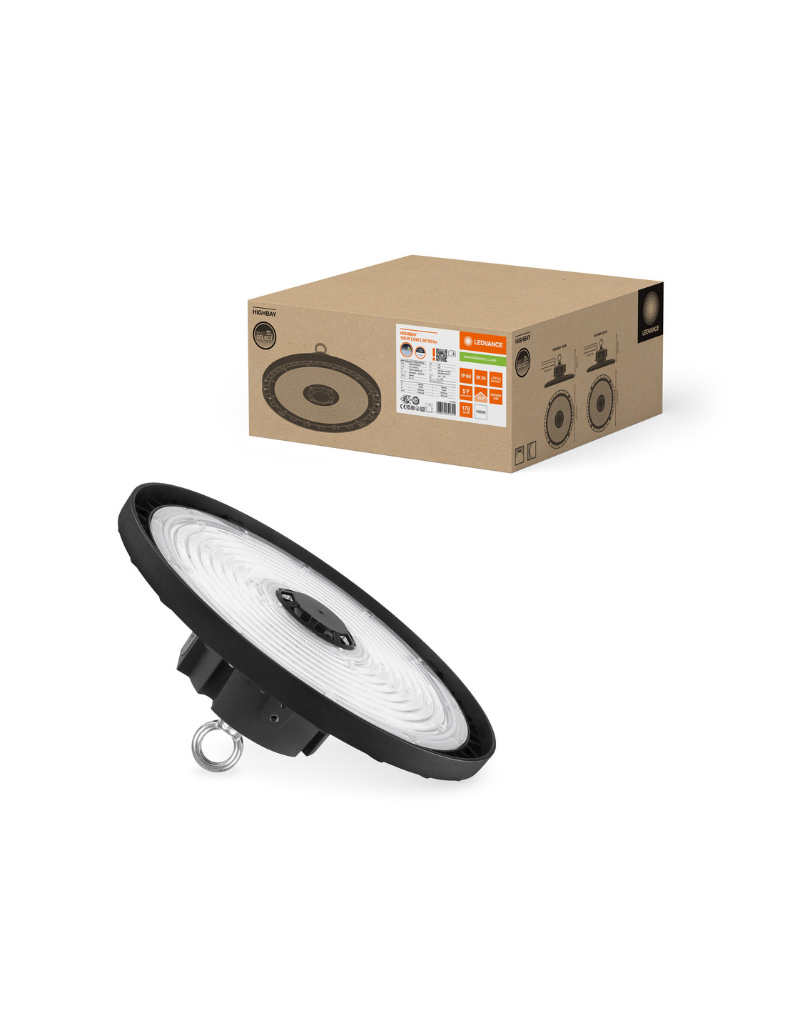 Cechy produktu: Funkcja Multi Lumen: możliwość wyboru stopni mocy. Różny strumień świetlny i kąt rozsyłu światła dla wysokości montażu od ~ 6 m do 18 m w temperaturze barwowej światła 4000 K lub 6500 K. Możliwość ściemniania 0-10 V. Trwałość (L80/B10): do 100 000 h (przy 35°C). Zalety produktu: Wysoka wszechstronność dzięki wybieranym stopniom mocy (Multi Lumen) na obudowie. Poprawiona wartość UGR w porównaniu do poprzednich generacji, aż do UGR 19 (<150W, 70°) w połączeniu z odbłyśnikiem. Wysoka skuteczność świetlna. Oszczędność energii do 70% w porównaniu z konwencjonalnymi oprawami oświetleniowymi typu high bay. Zoptymalizowana masa i rozmiary dzięki kompaktowej konstrukcji. Obszary zastosowań: Bezpośredni zamiennik opraw oświetleniowych typu High Bay do lamp rtęciowych lub metalohalogenkowych. Magazyny, hale logistyczne. Przemysł. Wysokie pomieszczenia (np.: centra handlowe, lotniska, budynki komercyjne, hole). Wyposażenie / Akcesoria: Zaczep do montażu w zestawie. Uchwyty montażowe, odbłyśniki i refraktory dostępne jako oddzielne akcesoria.