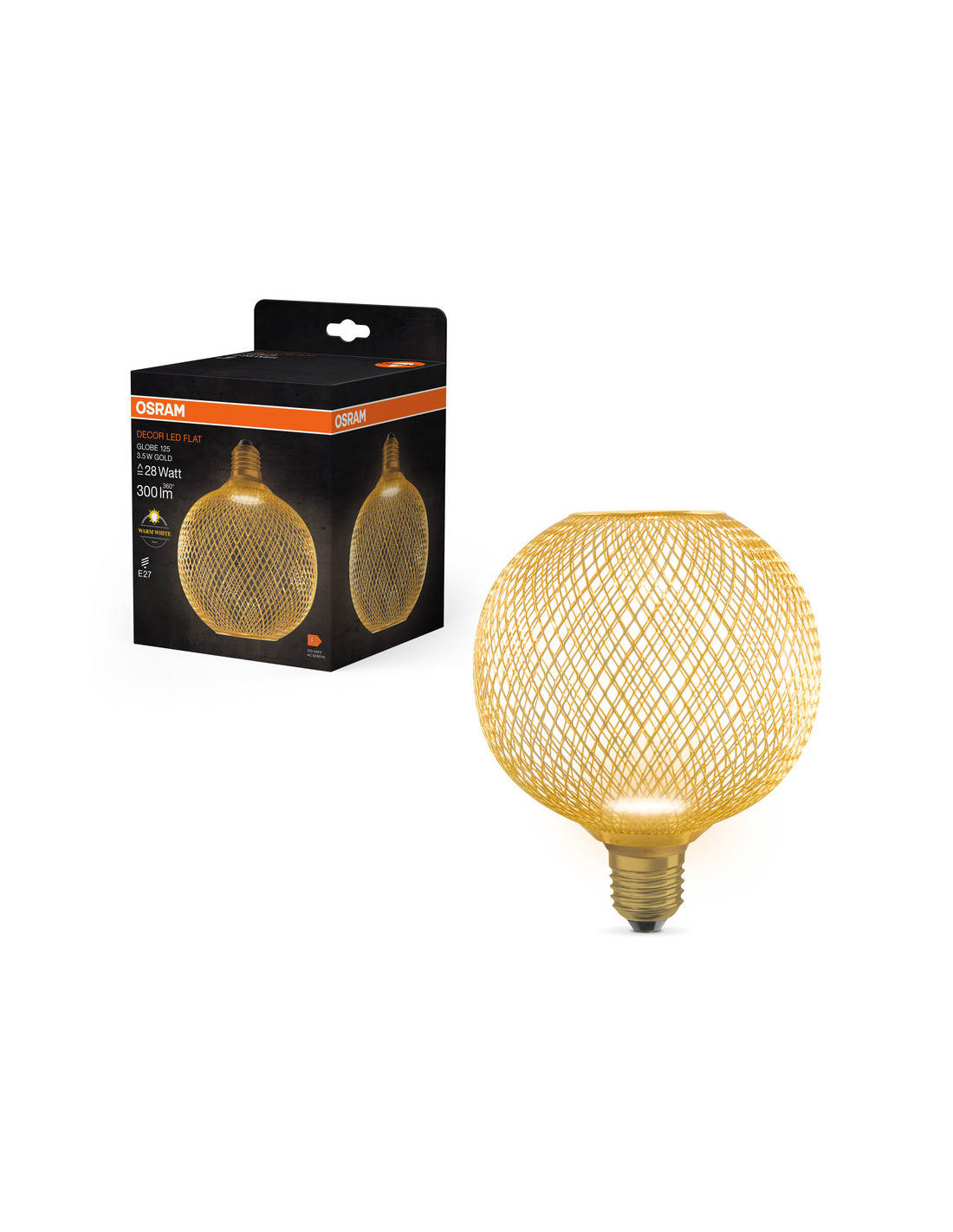Cechy produktu: Płaska lampa jest instalowana w metalowej obudowie ze względów projektowych. Metalowa obudowa występuje w dwóch wersjach: Globe i Square. Oferowane są dwa różne kolory obudowy oprawy: złoty i czarny. Trwałość: do 25 000 h. Płaską lampę można odłączyć od obudowy. Może być używana bezpośrednio jako oprawa oświetleniowa. Zalety produktu: Zintegrowana lampa zapewnia nowoczesną i luksusową atmosferę. Ultrakompaktowa designerska lampa bez klosza w kształcie żarówki. Specjalna konstrukcja zapewnia komfortowy rozsył światła. Stopień ochrony: IP20, Idealny do użytku w pomieszczeniach zamkniętych. Niższe zużycie energii w porównaniu do lamp żarowych lub halogenowych. Obszary zastosowań: Doskonałe rozwiązanie do instalacji dekoracyjnych. Luksusowe przestrzenie mieszkalne. Porady dotyczące bezpieczeństwa: Nie dotykaj lampy, jeśli jest stłuczona.. Nie wolno używać, jeśli zewnętrzne źródło światła jest uszkodzone..