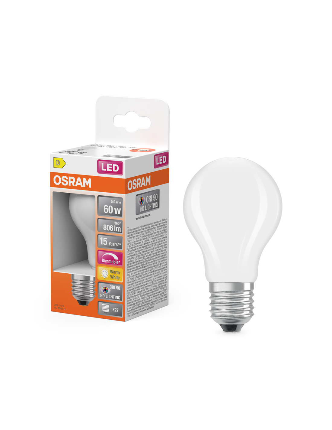 Cechy produktu: Lampy LED dla napięcia sieciowego. Kąt wiązki światła: do 300°. Ściemnialne. Wskaźnik oddawania barw Ra: 90. Zalety produktu: Lampy wyposażone w innowacyjną technologię „włókien” LED. Wygląd, wymiary i strumień świetlny porównywalne z żarówkami halogenowymi. Widmo światła naturalnego z doskonałym wskaźnikiem oddawania barw Ra > 90. Znacznie zmniejszony zakres niebieskiego światła. Poprawiony komfort widzenia i zmniejszone zmęczenie wzroku. Niższe zużycie energii w porównaniu do lamp żarowych lub halogenowych. Natychmiast 100 % światła, bez czasu nagrzewania. Niskie tętnienie światła. Obszary zastosowań: Doskonałe rozwiązanie do instalacji dekoracyjnych. Zastosowania domowe. Oświetlenie ogólne. Do użytku na zewnątrz tylko w odpowiednich oprawach zewnętrznych. Porady dotyczące bezpieczeństwa: Nie dotykaj lampy, jeśli jest stłuczona.. Nie wolno używać, jeśli zewnętrzne źródło światła jest uszkodzone..