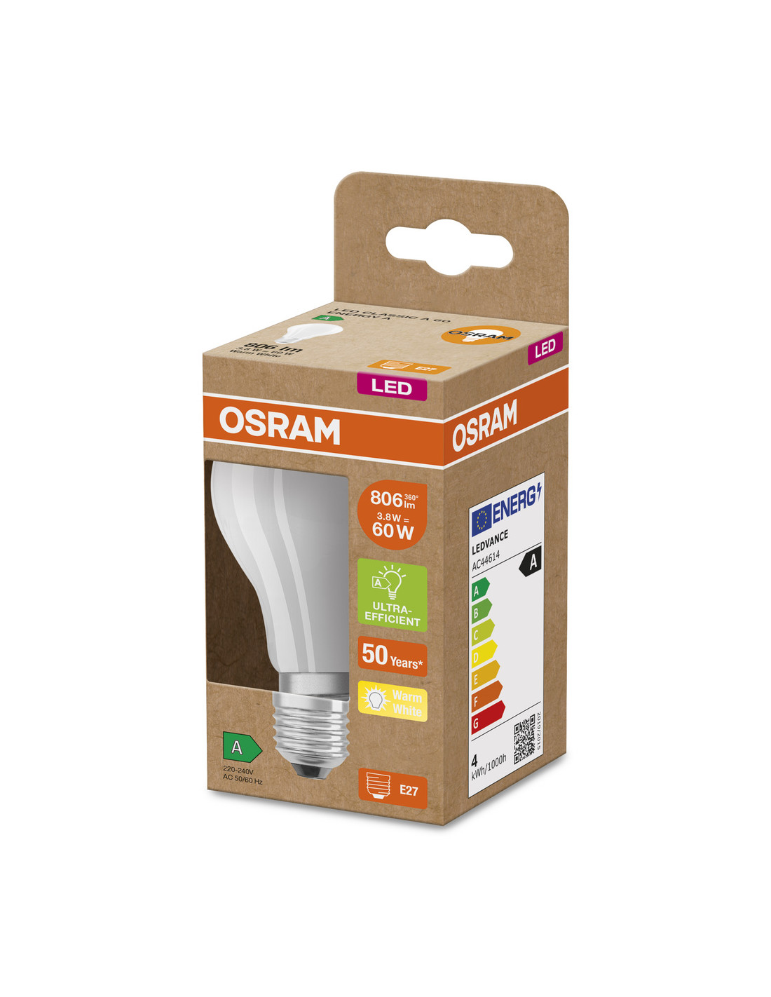 ŻARÓWKA LED ENERGY CLASS CLA60 3,8W 3000K ciepła biała E27 806LM GL FR EE KLASA A