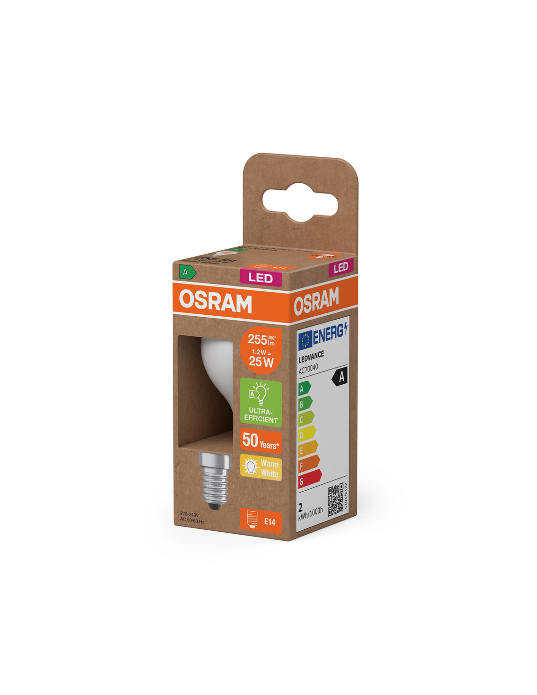 ŻARÓWKA LED ENERGY CLASS CLP25 1,2W 2700K ciepła biała E14 255LM GL FR EE KLASA A