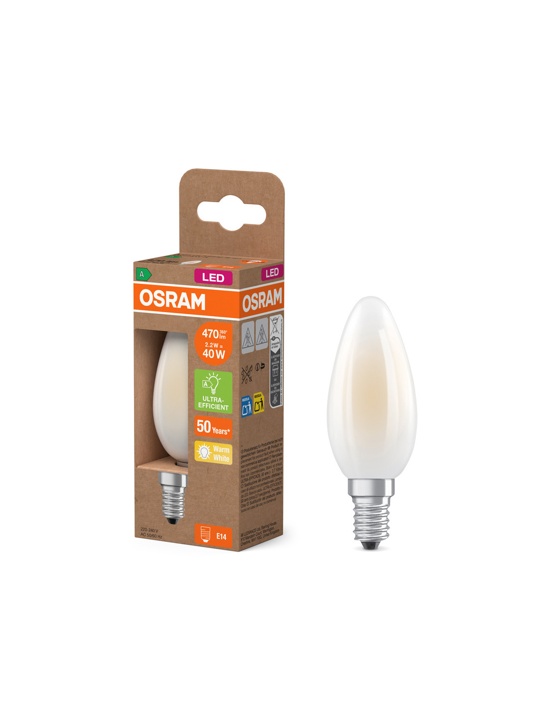 ŻARÓWKA LED ENERGY CLASS CLB40 2,2W 2700K ciepła biała E14 470LM GL FR EE KLASA A