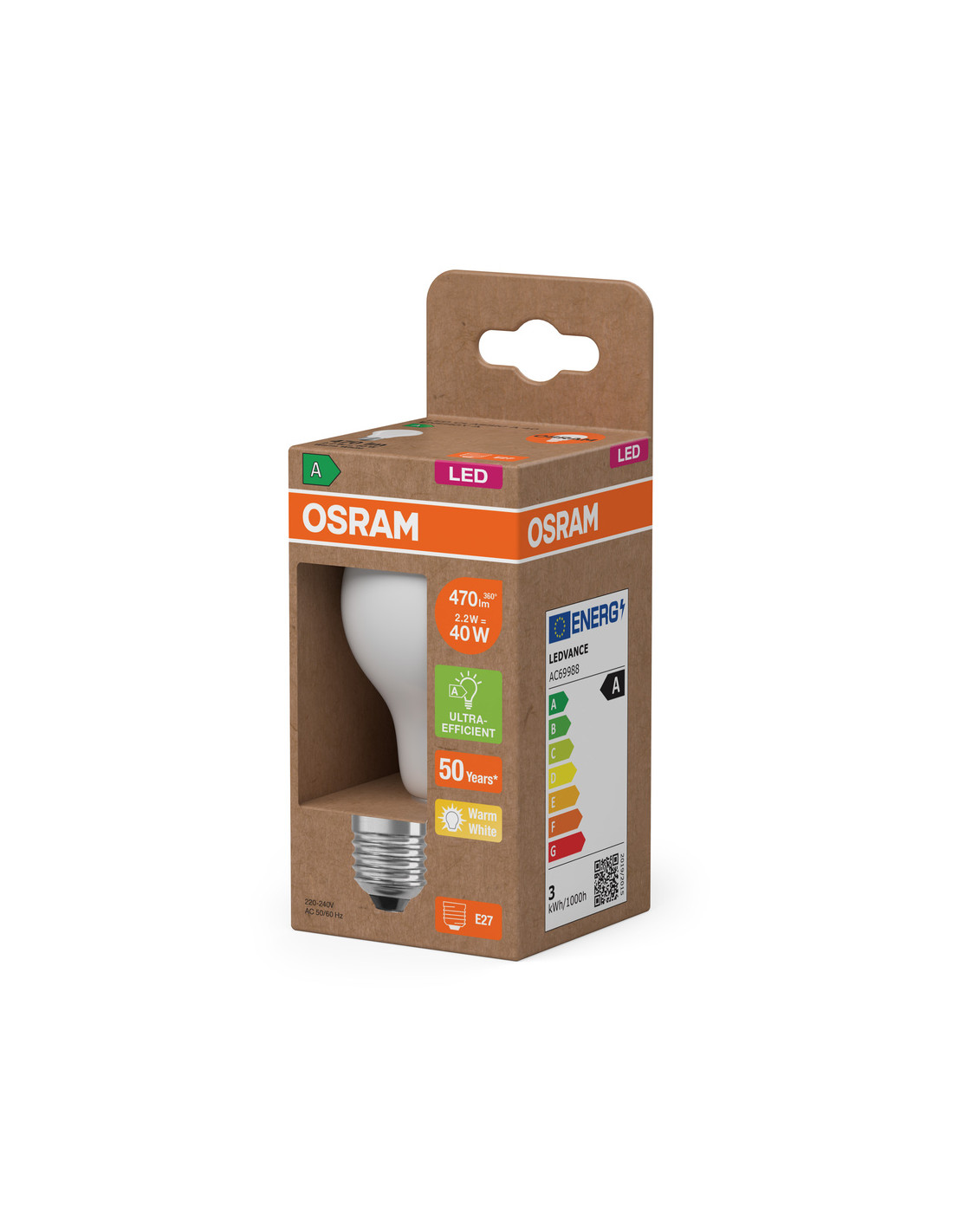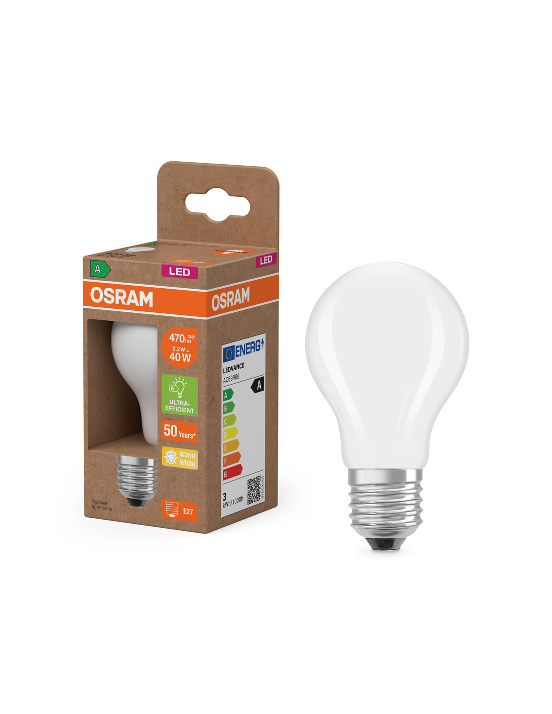 ŻARÓWKA LED ENERGY CLASS CLA40 2,2W 2700K ciepła biała E27 470LM GL FR EE KLASA A
