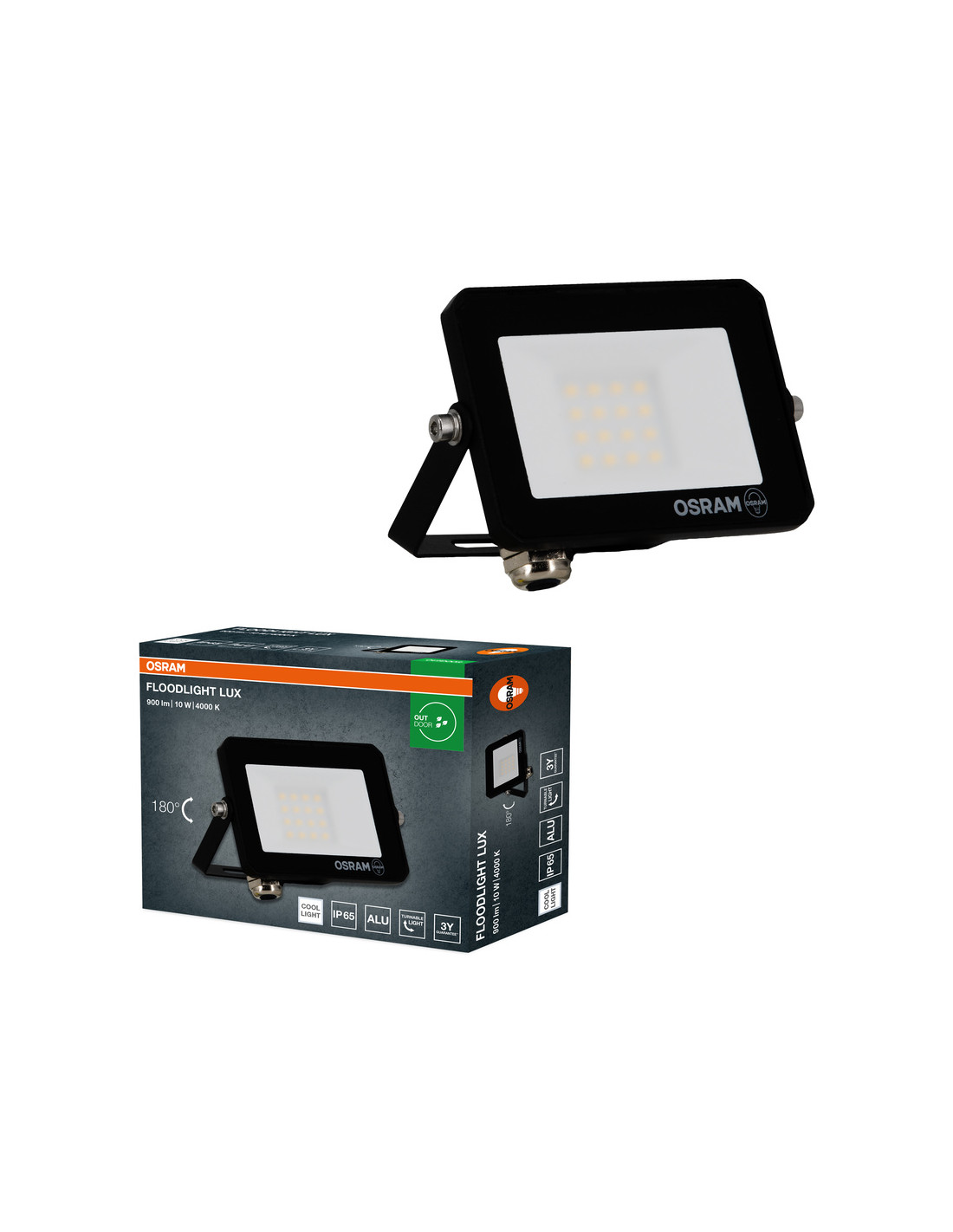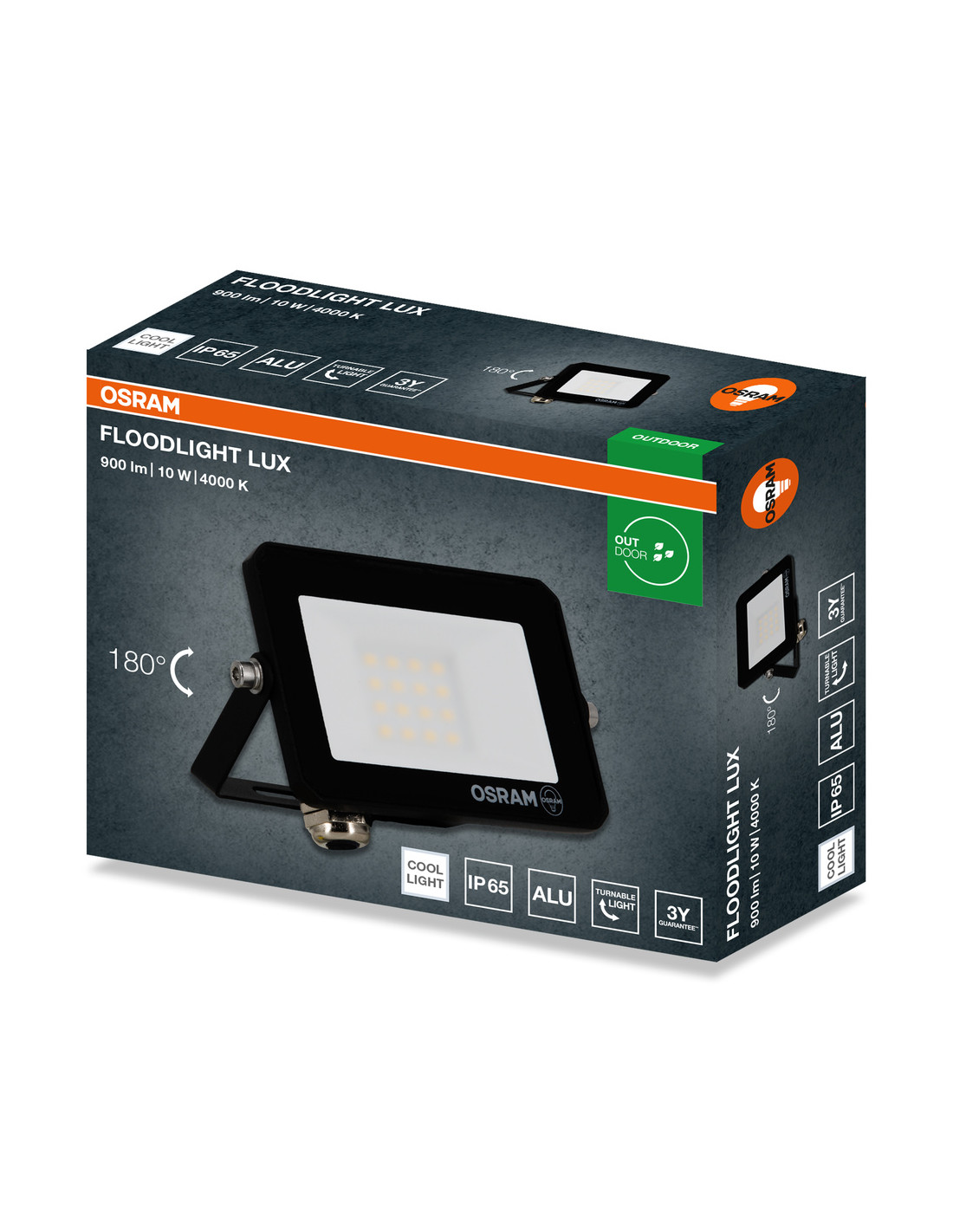 NAŚWIETLACZ FLOOD LED LUX 10W 4000K 900LM BK IP65 3Y