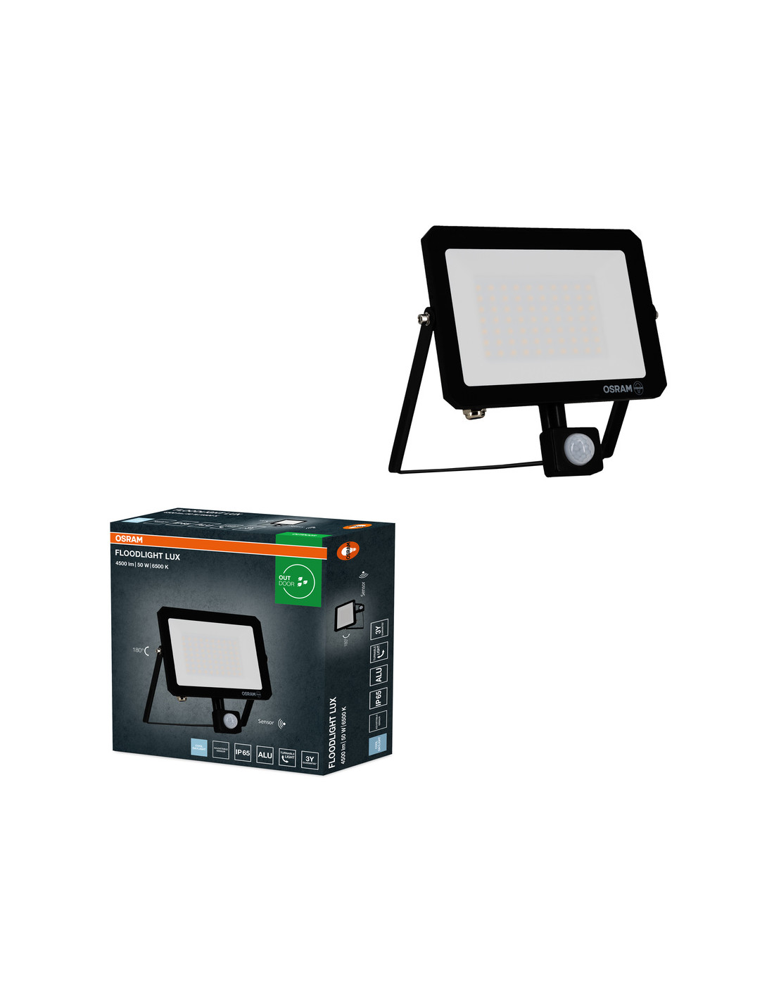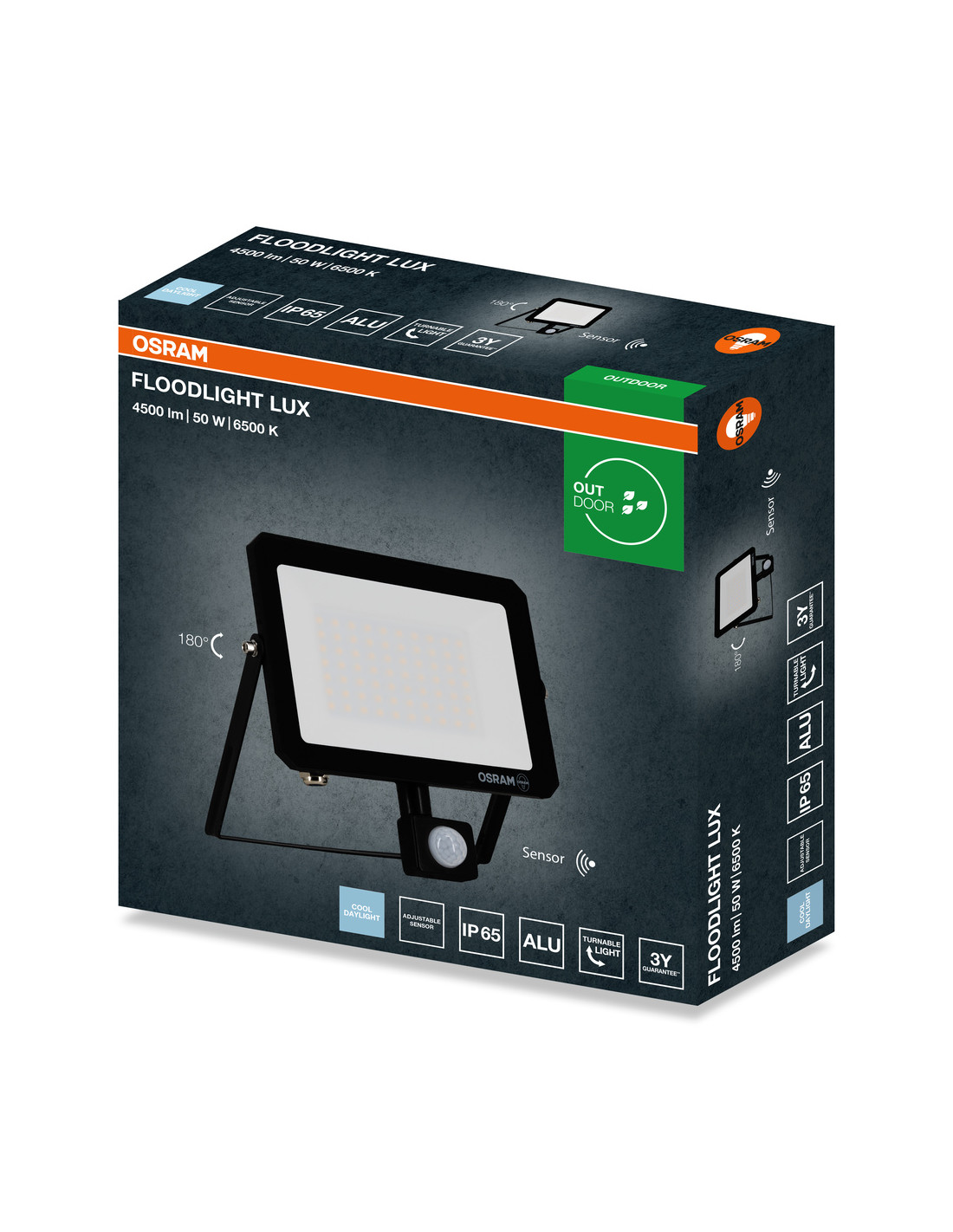 NAŚWIETLACZ FLOOD LED LUX SENSOR 50W 6500K 4500LM BK IP65 3Y