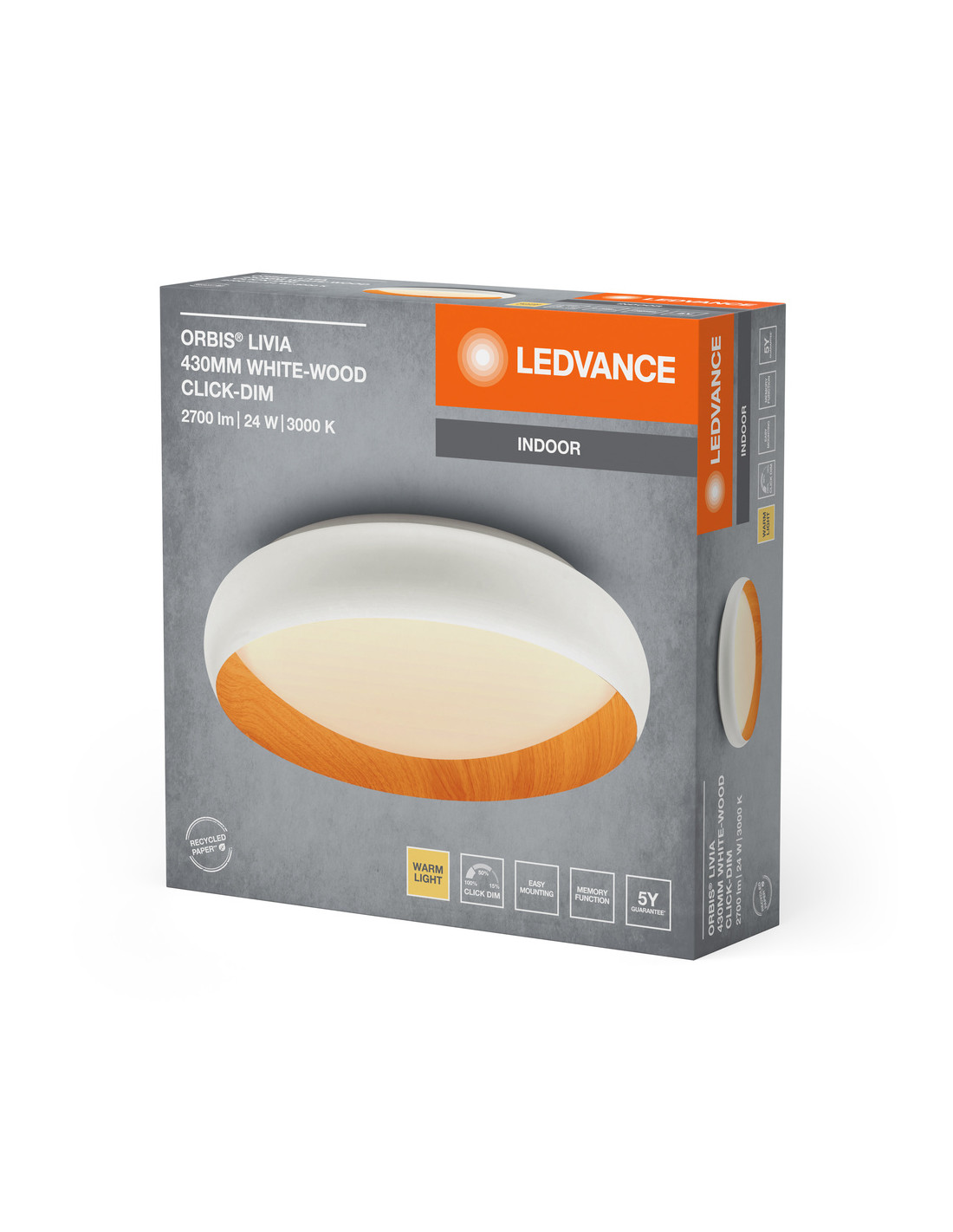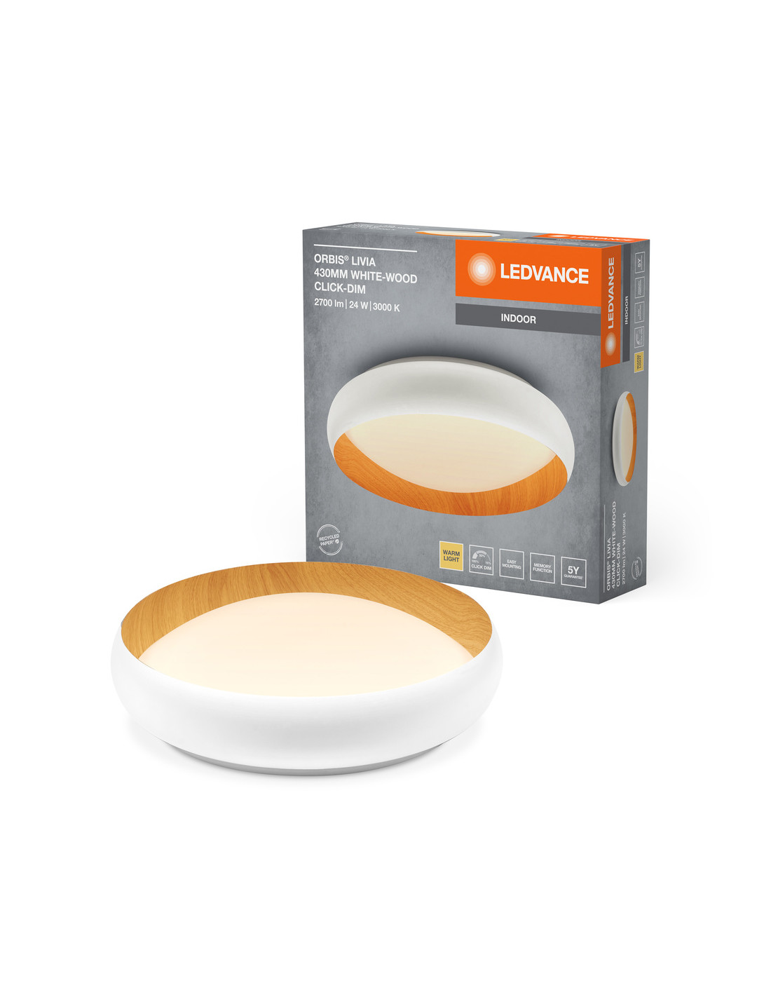 PLAFON LED ORBIS LIVIA 430MM 24W 3000K ciepła biała CLICK DIM WHITE AND WOOD DECOR