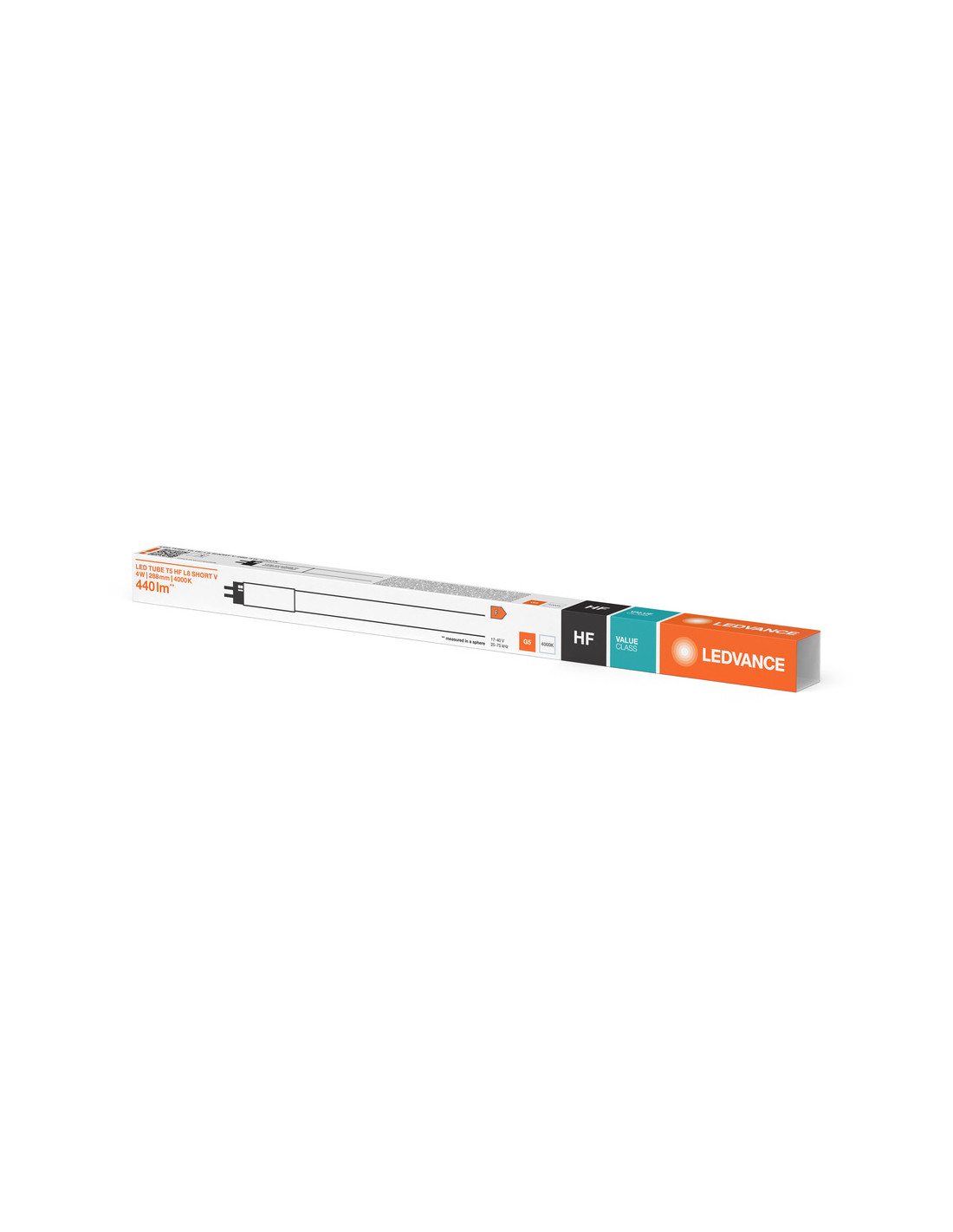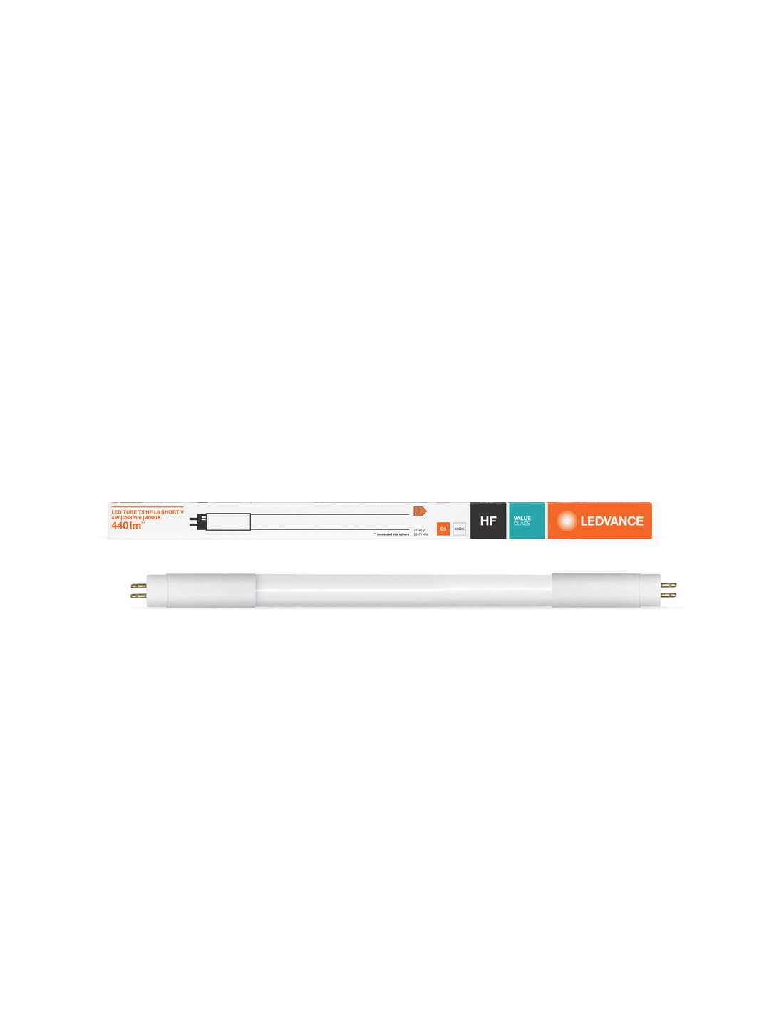 Cechy produktu: Zamiennik świetlówek liniowych T5 w instalacjach ze statecznikami elektronicznymi. Tuba LED wykonana ze szkła z zabezpieczeniem przed odpryskami. Wysoka jedorodność barw: 5 sdcm. Trwałość: do 30 000 h. Niskie tętnienie światła zgodnie z UE 2019/2020 (SVM 0,4 / PstLM 1). Stopień ochrony: IP20. Kompatybilność z popularnymi statecznikami elektronicznymi (patrz również compatibility list). Zalety produktu: Lampa nie ugina się dzięki rurce wykonanej ze szkła. Szybka, prosta i bezpieczna wymiana bez zmiany okablowania. Nadaje się również do pracy w niskich temperaturach. Prosimy o przestrzeganie wszystkich zaleceń dotyczących bezpieczeństwa. Obszary zastosowań: Oświetlenie ogólne – dla temperatur otoczenia w zakresie -20…+45 °C. Budynki publiczne. Kuchnie. Oświetlenie pod szafkami. Porady prawne: W przypadku zastąpienia świetlówki T5 całkowita efektywność energetyczna i rozsył światła zależą od projektu systemu oświetleniowego.. Porady dotyczące bezpieczeństwa: Możliwa praca w zastosowaniach zewnętrznych w odpowiednich oprawach odpornych na wilgoć zgodnie z kartą katalogową i instrukcją instalacji.. Zakres temperatur pracy tub LED jest ograniczony. W przypadku wątpliwości, należy zmierzyć temperaturę w punkcie Tc oznaczonym na lampie w celu weryfikacji.. Nie nadaje się do oświetlenia awaryjnego..