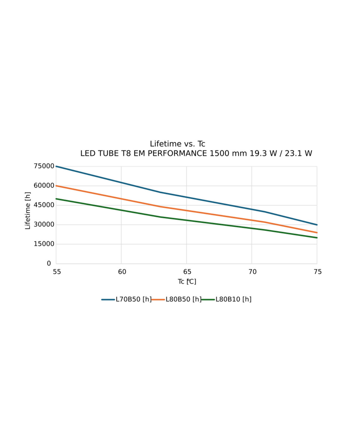 - Średnia trwałość znamionowa (h) 75000