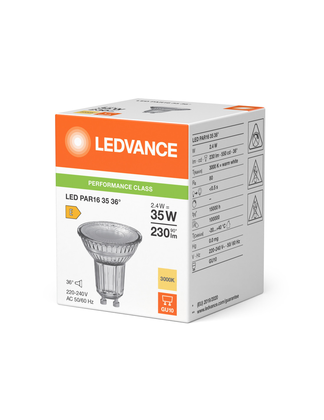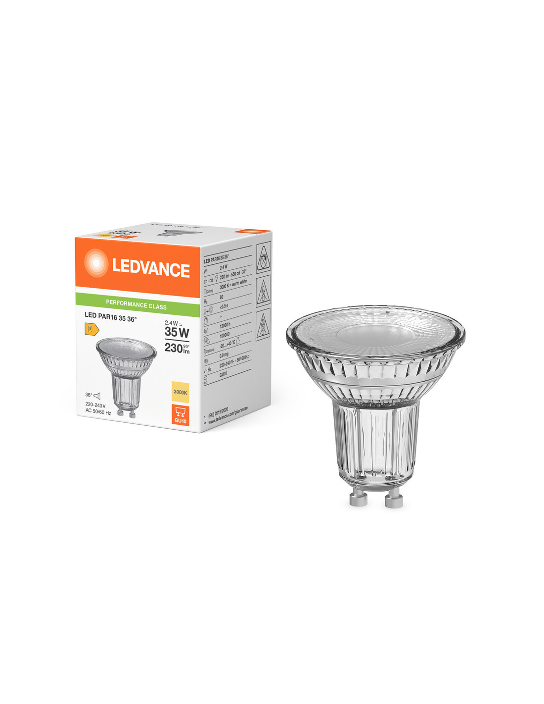 ŻARÓWKA LED P SPOT PAR16 GL 35 36° 2,4W 3000K ciepła biała GU10 230LM