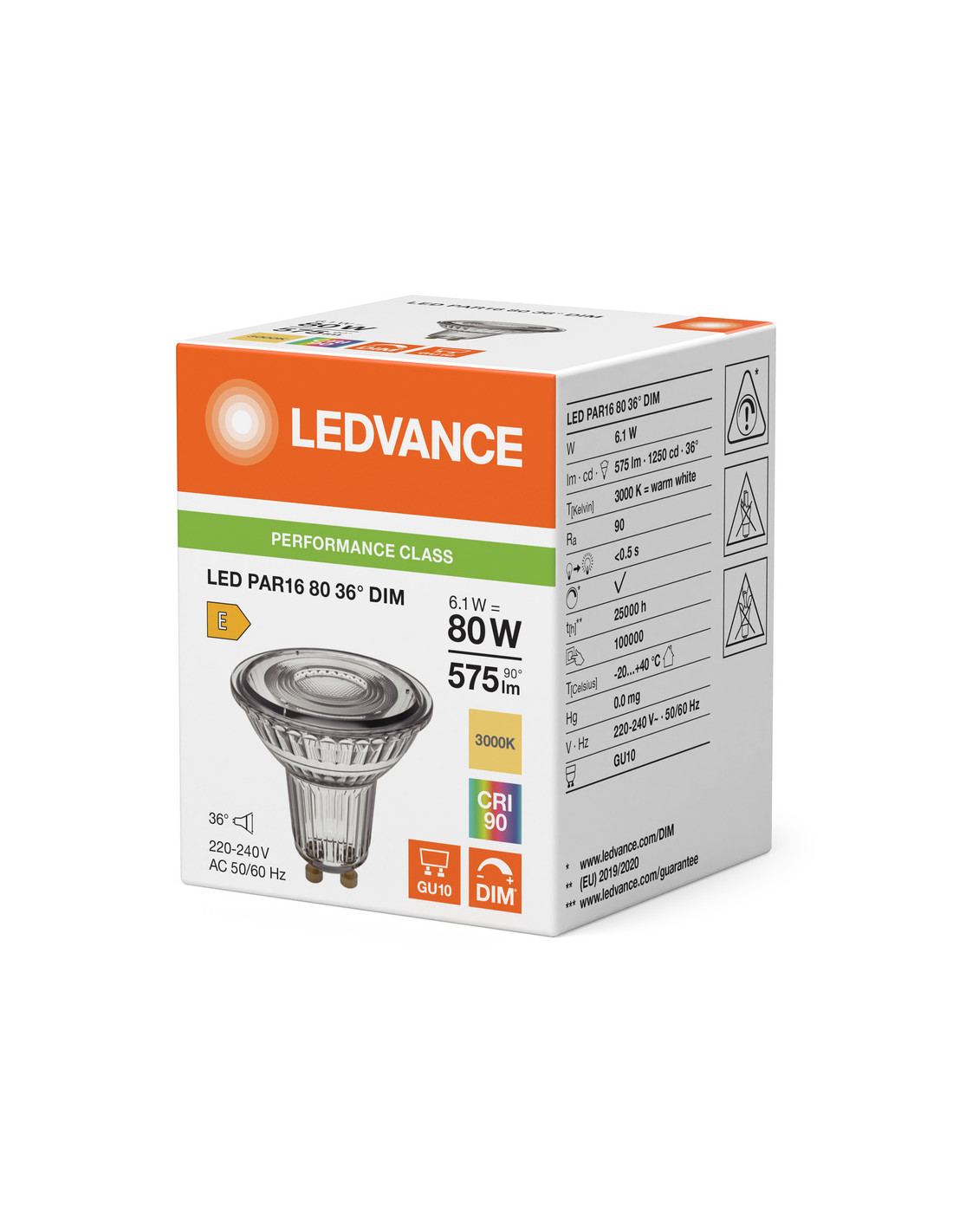 ŻARÓWKA LED P SPOT PAR16 GL 80 36° DIM 6.1W 3000K ciepła biała CRI90 GU10 575LM