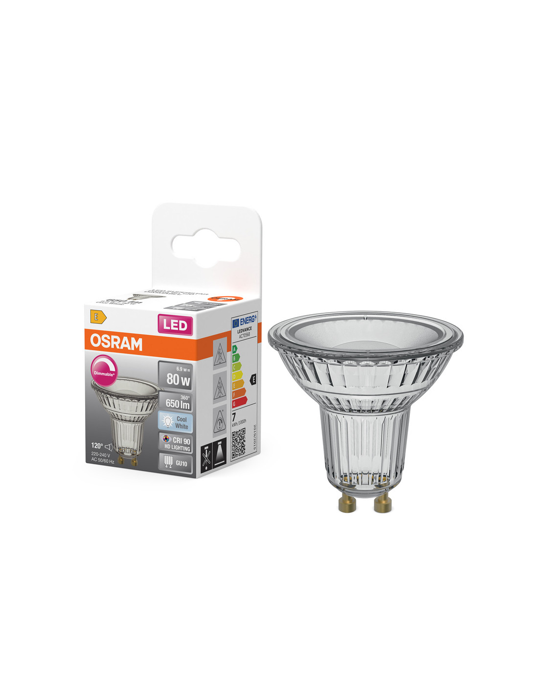Cechy produktu: Zamienniki LED dla konwencjonalnych żarówek wysokonapięciowych. Ściemnialne (za pomocą licznych popularnych ściemniaczy, zobacz więcej www.ledvance.pl/dim). Lampy niezawierające rtęci. Zalety produktu: Niższe zużycie energii w porównaniu do lamp żarowych lub halogenowych. Wysoka spójność barw dzięki precyzyjnemu sortowaniu struktur półprzewodnikowych. Łatwa wymiana żarówek halogenowych dzięki kompaktowej w pełni szklanej konstrukcji i pojedynczemu układowi optycznemu. Idealne, ekonomiczne reflektory kierunkowe. Obszary zastosowań: Sklepy. Hotele. Muzea, galerie sztuki. Pomieszczenia mieszkalne. Jako światło wpuszczane do oznaczania przejść, drzwi, schodów itp.. Oświetlenie kierunkowe akcentujące. Szafki do ekspozycji i witryny sklepowe. Oświetlenie kierunkowe obiektów wrażliwych na ciepło, np. żywności roślin itp.. Do użytku na zewnątrz tylko w odpowiednich oprawach zewnętrznych. Porady dotyczące bezpieczeństwa: Nie dotykaj lampy, jeśli jest stłuczona.. Nie wolno używać, jeśli zewnętrzne źródło światła jest uszkodzone..