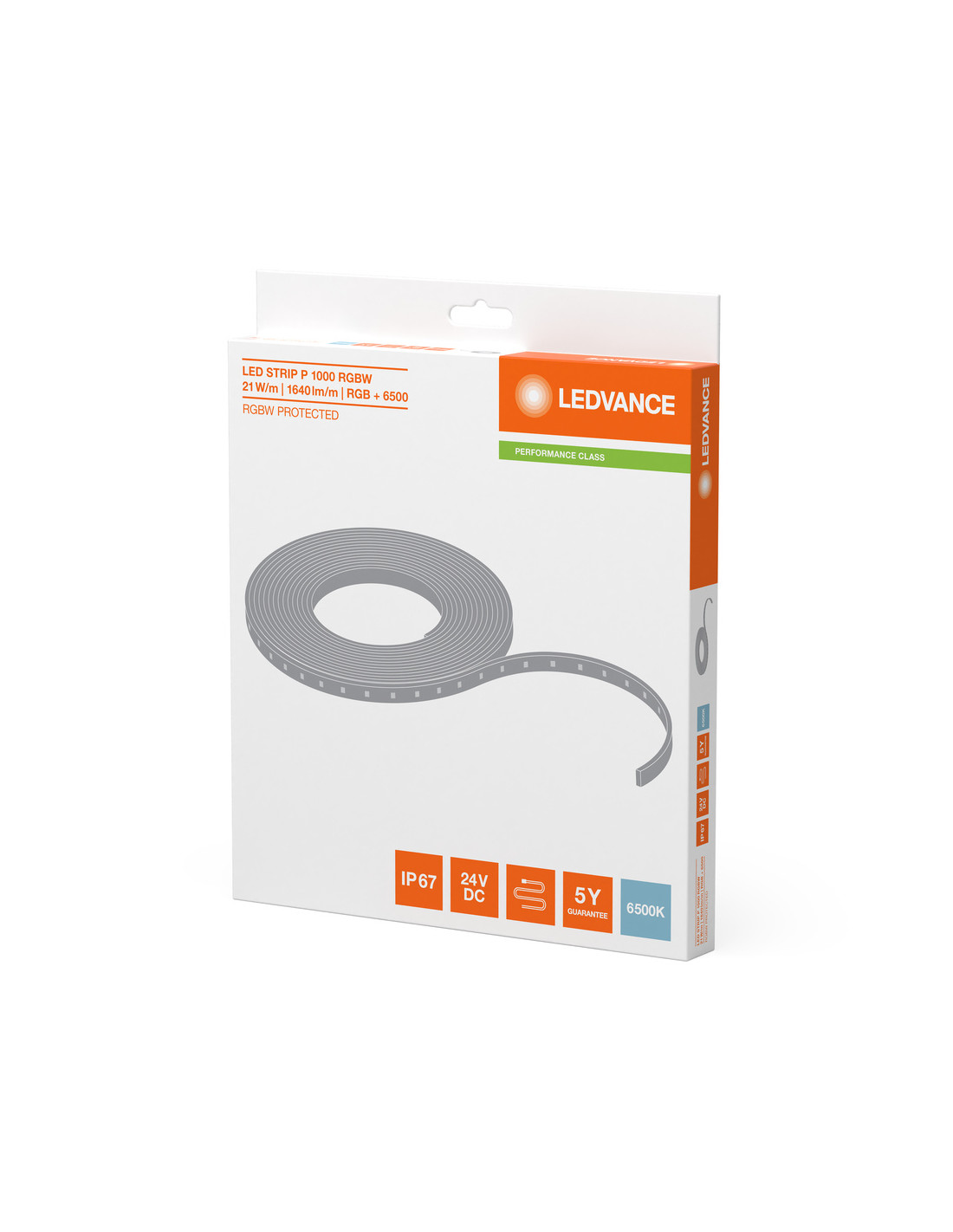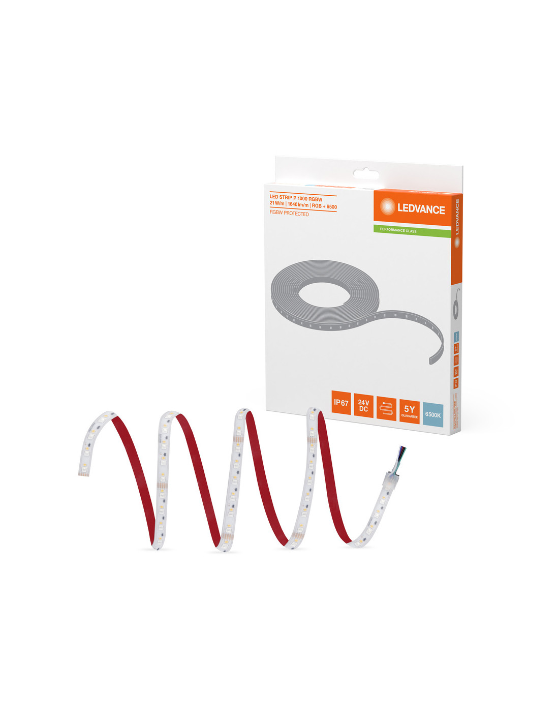 Cechy produktu: Elastyczny i podzielny pasek LED z diodami wytwarzającymi światło białe i w wersji RGB. Najmniejsza jednostka podziału : 83,30 mm. Trwałość (L70/B50): do 50 000 h przy Ta: 55°C. Regulacja strumienia świetlnego poprzez modulację szerokości impulsu (PWM). Wysoka odporność na promieniowanie UV. Ochrona przed mgłą zawierającą sól. Stopień ochrony: IP67. Zalety produktu: Bardzo dobra jakość światła dzięki wskaźnikowi oddawania barw Ra > 90 i dedykowanym białym diodom LED. Szeroki zakres możliwości projektowych dzięki długim i elastycznym paskom LED RGBW. Łatwy montaż taśmą samoprzylepną. Łatwe podłączenie dzięki zintegrowanym przewodom po obu stronach. Maksymalna uniwersalność dzięki dużemu asortymentowi wyposażenia dodatkowego. Łatwa instalacja, podłączenie nie wymaga zastosowania narzędzi. Obszary zastosowań: Oświetlenie ogólne. Oświetlenie fasad budynków. Światło dynamiczne jako efekt architektoniczny w miejscach publicznych. Intensywne efekty barwne tworzące wyjątkowy nastrój. Do zastosowania w oświetleniu wewnętrznym i zewnętrznym (IP67). Hotele i biura. Pomieszczenia mieszkalne.
