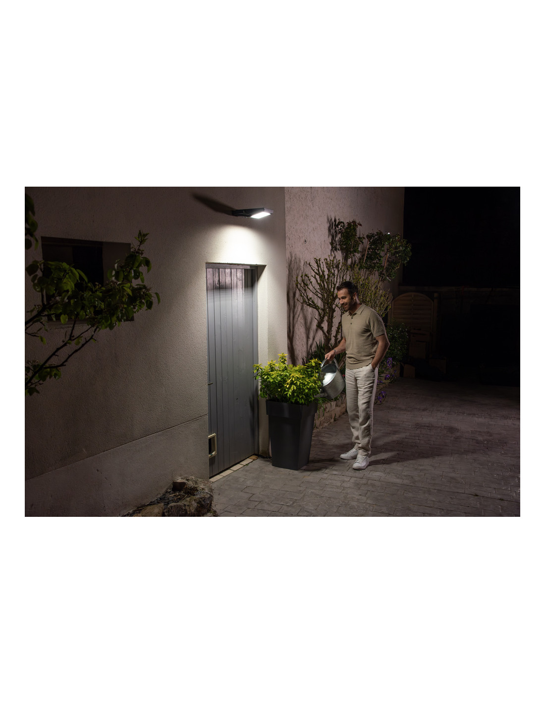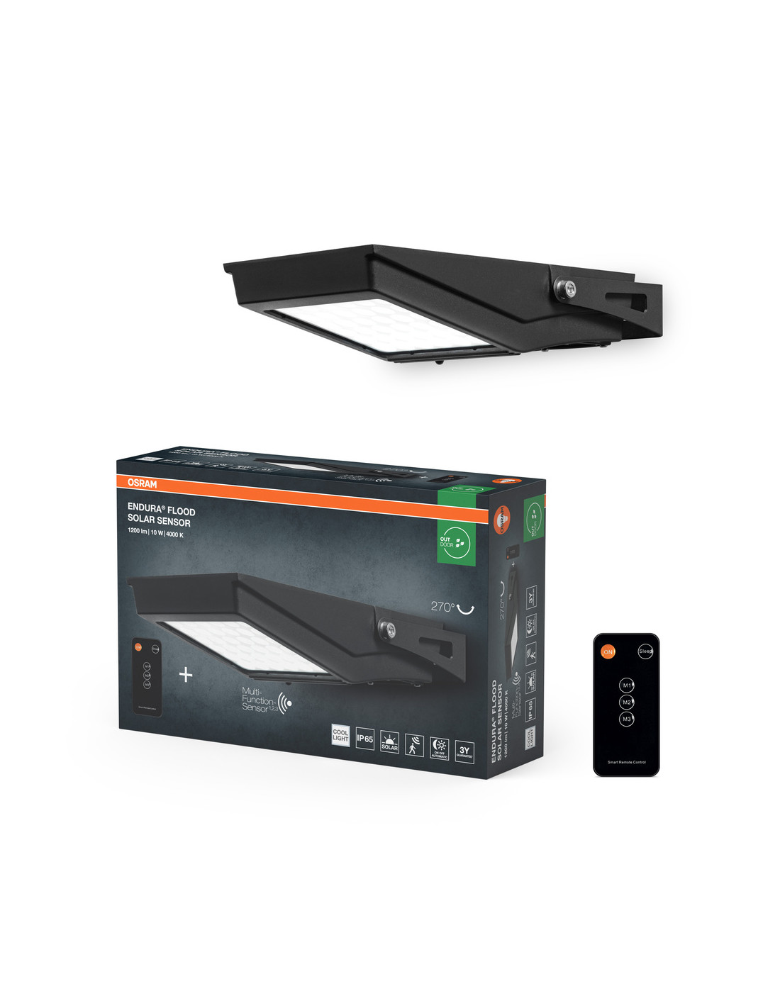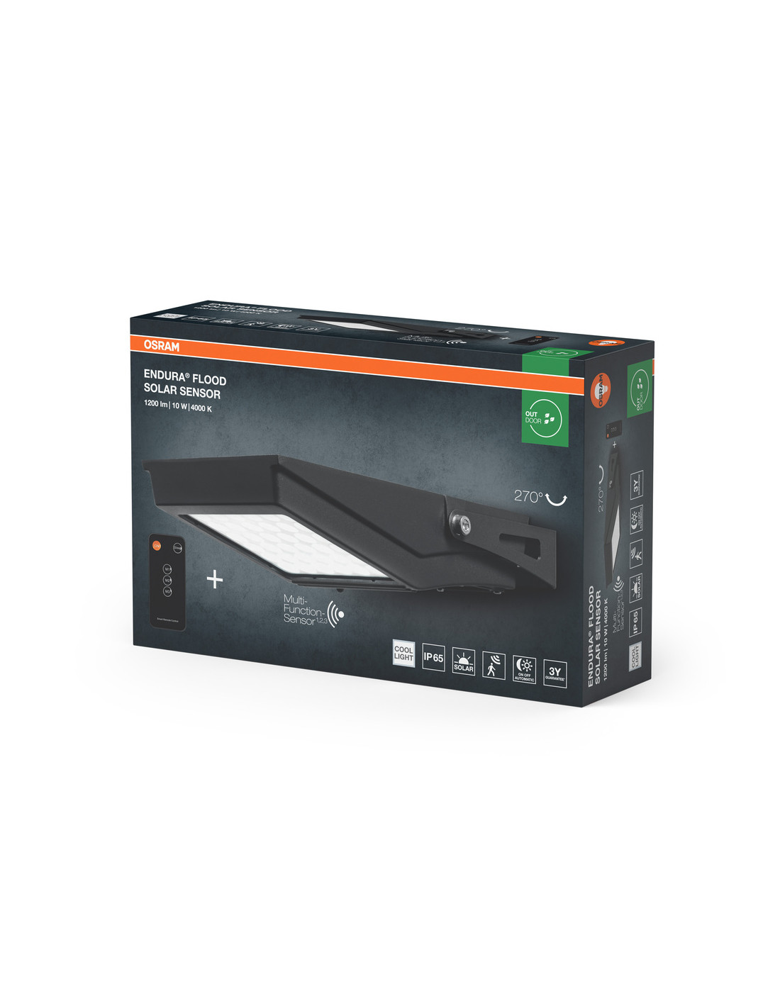 Cechy produktu: Wydajny naświetlacz LED o wysokim strumieniu świetlnym. Oprawy oświetleniowe LED do użytku zewnętrznego zasilane energią słoneczną. Uniwersalny czujnik ruchu i światła. Zalety produktu: Ekologiczna oprawa zasilana energią słoneczną;. Programowanie za pomocą pilota PIR. Wiele regulacji zasięgu czujnika światła i czasu jego działania. Automatyczne wł. i wył. zgodnie z dostępnym światłem dziennym dzięki czujnikowi światła. Obszary zastosowań: Na zewnątrz. Wyposażenie / Akcesoria: Pilot w zestawie. Porady dotyczące bezpieczeństwa: Jeśli komora baterii (jeśli dotyczy) nie zamyka się bezpiecznie, zaprzestań używania produktu i trzymaj go z dala od dzieci. Jeśli podejrzewasz, że baterie mogły zostać połknięte lub umieszczone w jakiejkolwiek części ciała, natychmiast zwróć się o pomoc lekarską.. Prosimy unikać: Maksymalna temperatura otoczenia: +35 °C. Wymiana baterii na nieprawidłowy typ, który może obejść zabezpieczenie (na przykład w przypadku niektórych typów baterii litowych). Wysokość podczas pracy: 2000 m. Utylizacja baterii w ogniu lub gorącym piekarniku, lub mechaniczne zgniatanie lub cięcie baterii, co może spowodować wybuch..